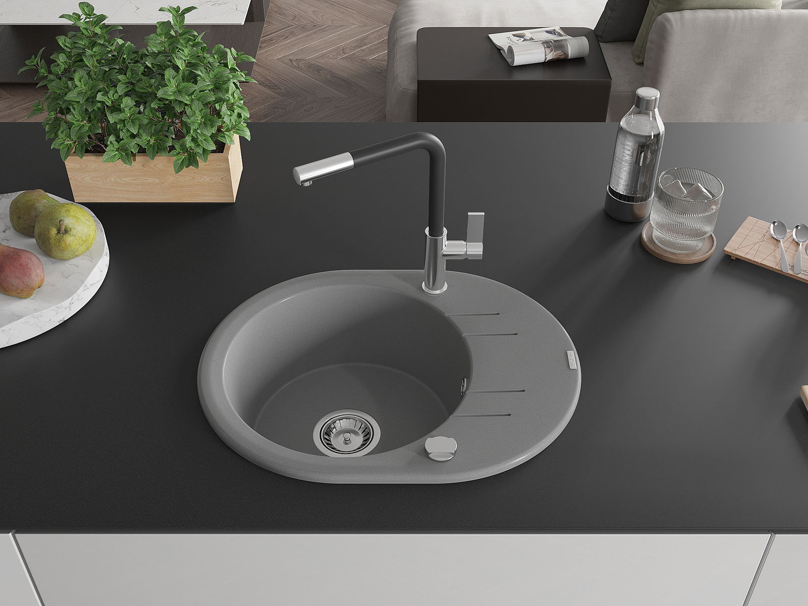 L'évier a été fabriqué en granit de haute qualité. Il constitue un complément élégant et surtout pratique à toute cuisine, quel que soit son style. La haute qualité et la durabilité du granit garantissent une utilisation pendant de nombreuses années.
