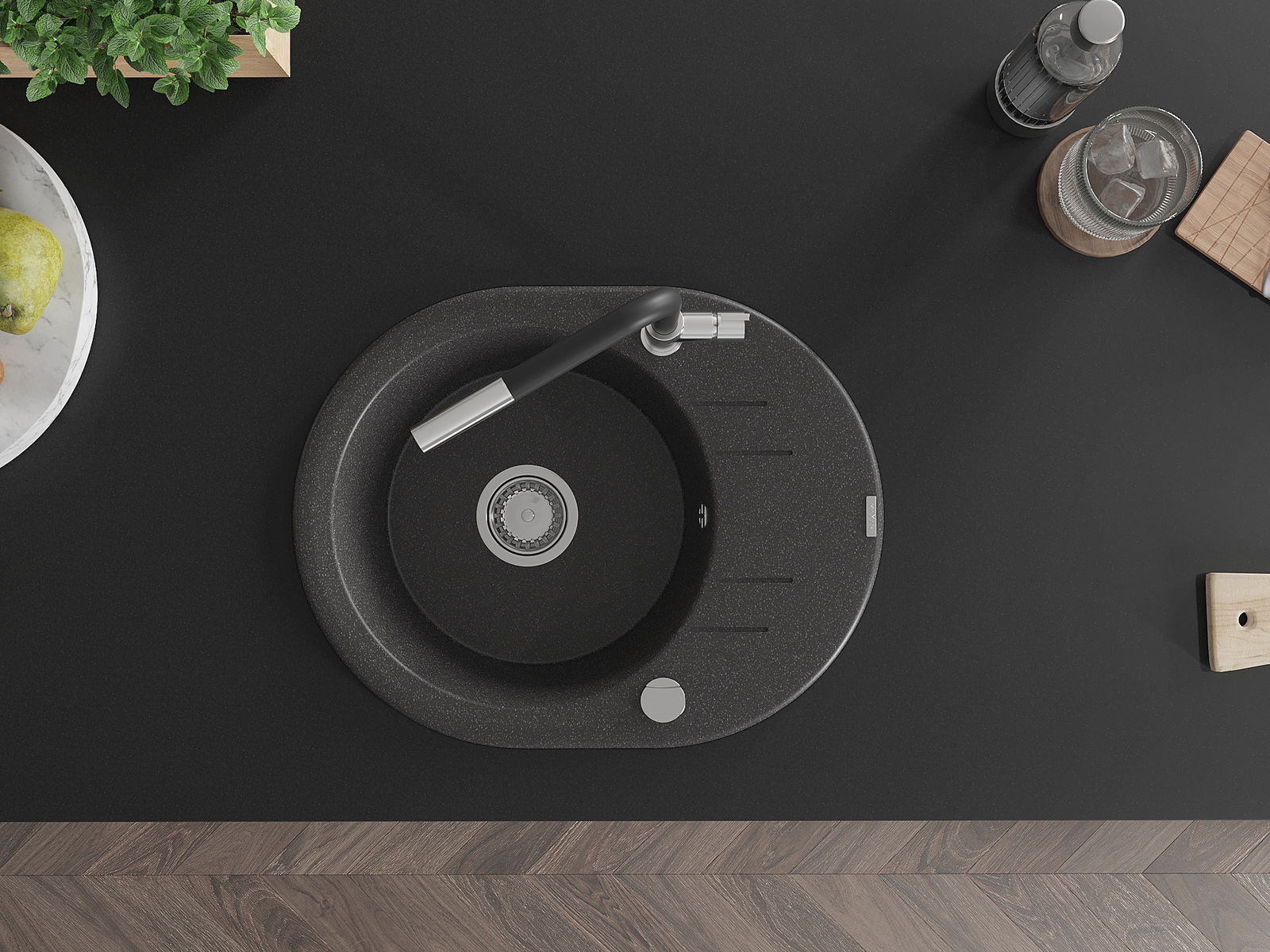 L'évier a été fabriqué en granit de haute qualité. Il constitue un complément élégant et surtout pratique à toute cuisine, quel que soit son style. La haute qualité et la durabilité du granit garantissent une utilisation pendant de nombreuses années.