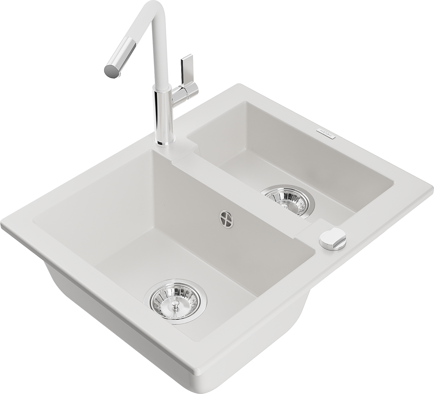 Mexen Carlos évier en granit 1,5 bac avec robinet de cuisine Flora, blanc - 6518-20-670401-02
