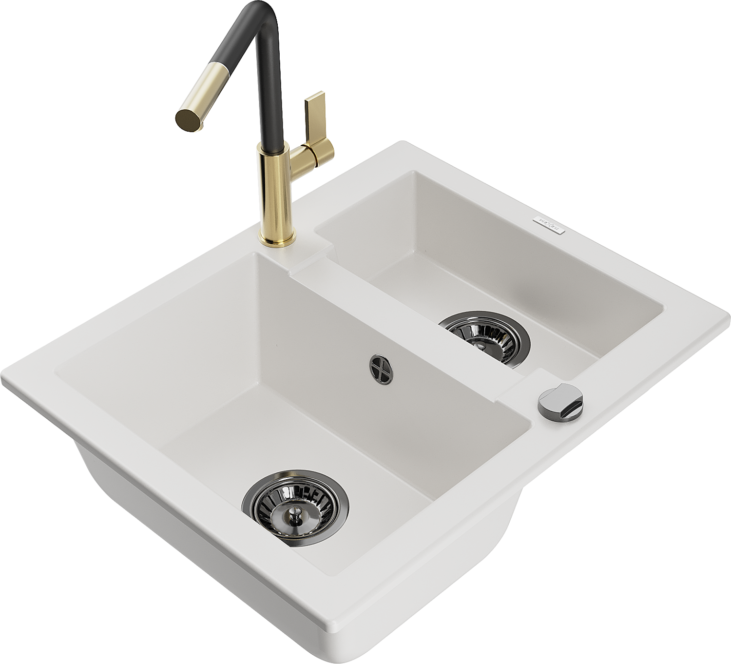 Mexen Carlos évier en granit 1,5 bac avec robinet de cuisine Flora, blanc - 6518-20-670401-57-B