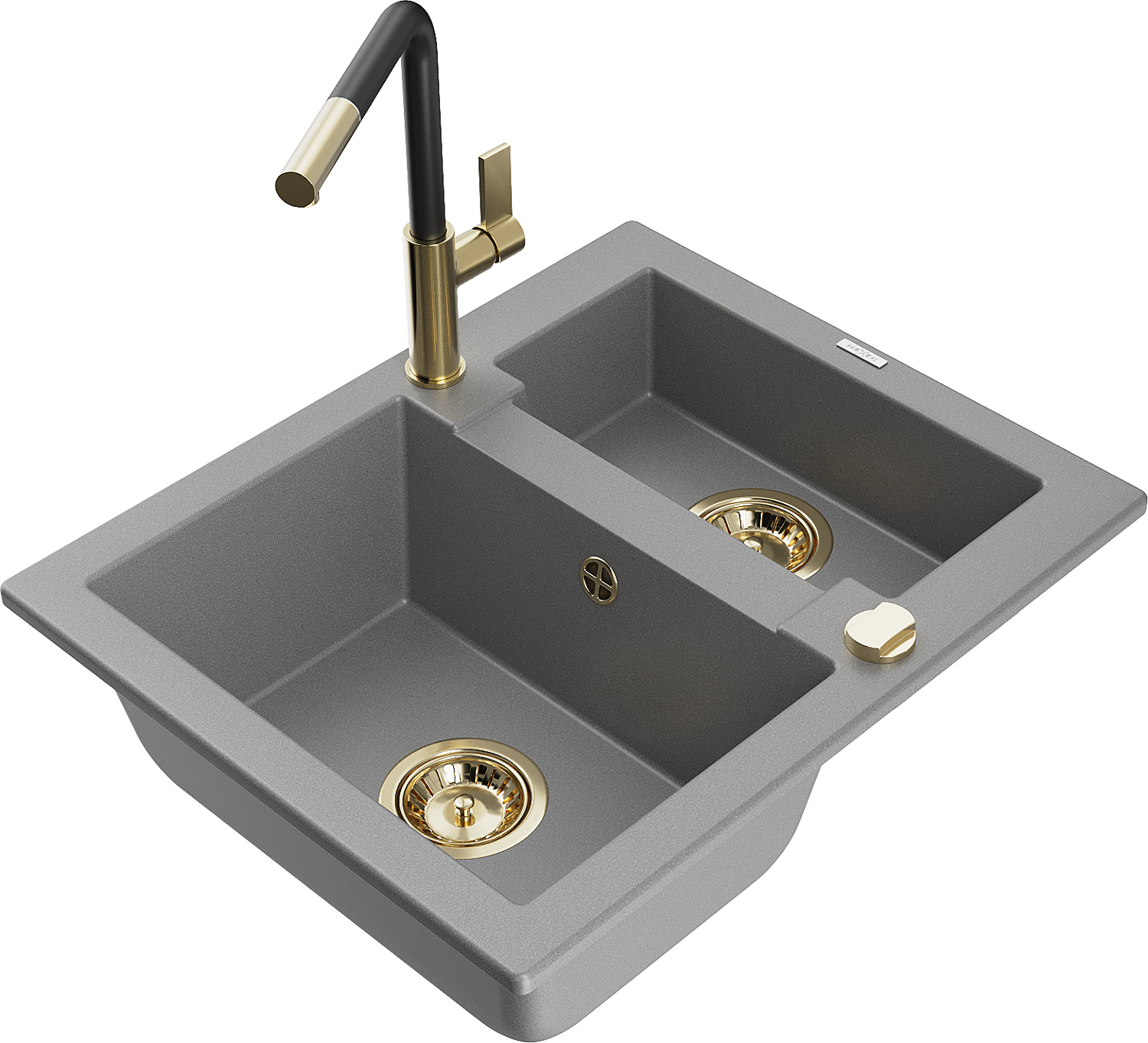 Mexen Carlos évier en granit 1,5 bac avec robinet de cuisine Flora, gris - 6518-71-670401-57-G