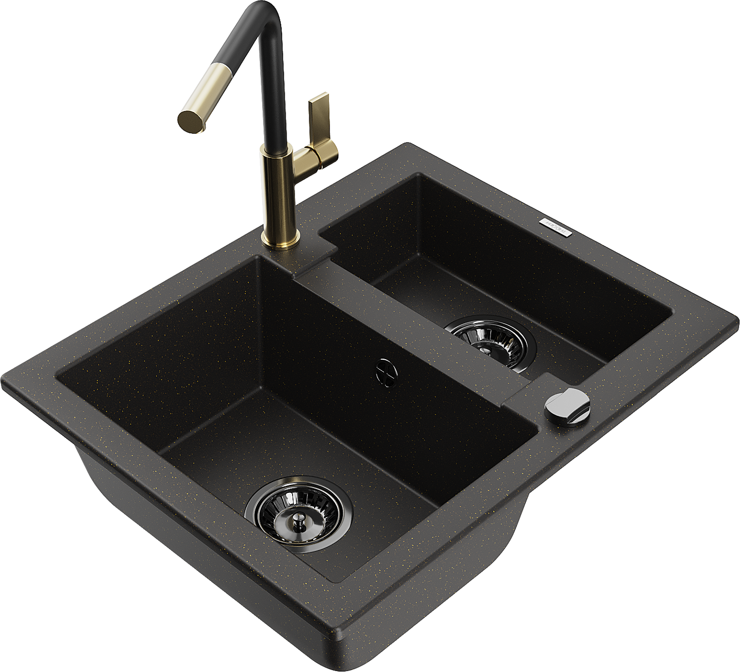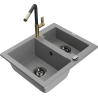 Mexen Carlos évier en granit 1,5 bac avec robinet de cuisine Flora, noir/doré métallique - 6518-75-670401-57-B