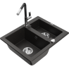 Mexen Carlos évier en granit 1,5 bac avec robinet de cuisine Flora, noir - 6518-77-670401-07