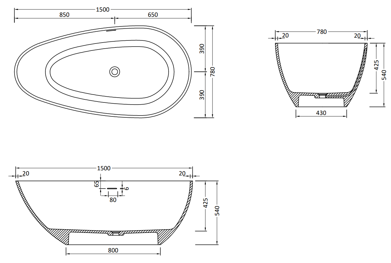 Mexen Palermo baignoire autoportante en conglomérat 150 x 78 cm, blanc mat - 57211507800