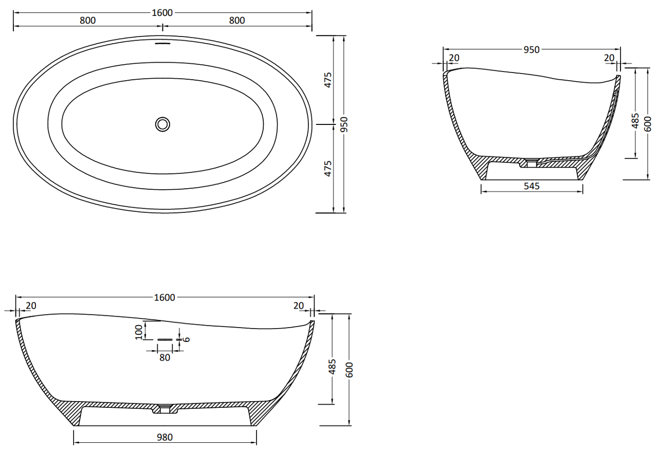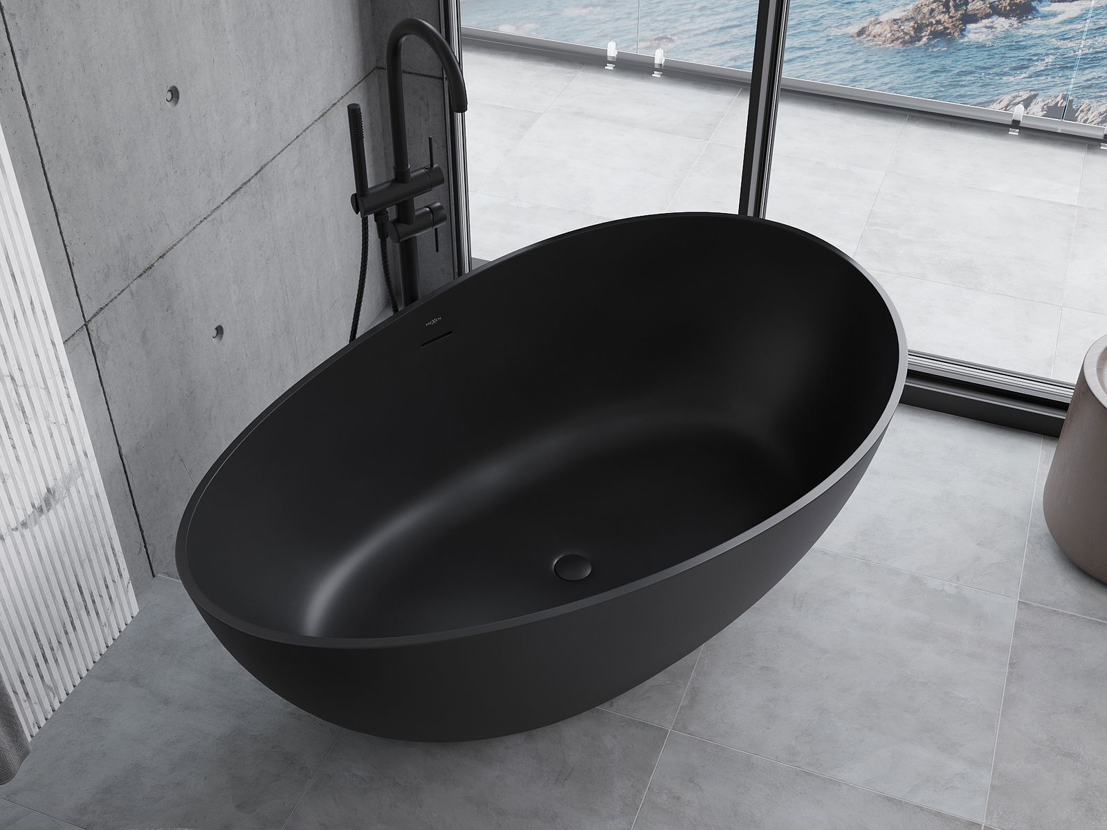 Mexen Parma baignoire autoportante en conglomérat 160 x 95 cm, noir mat - 57231609570