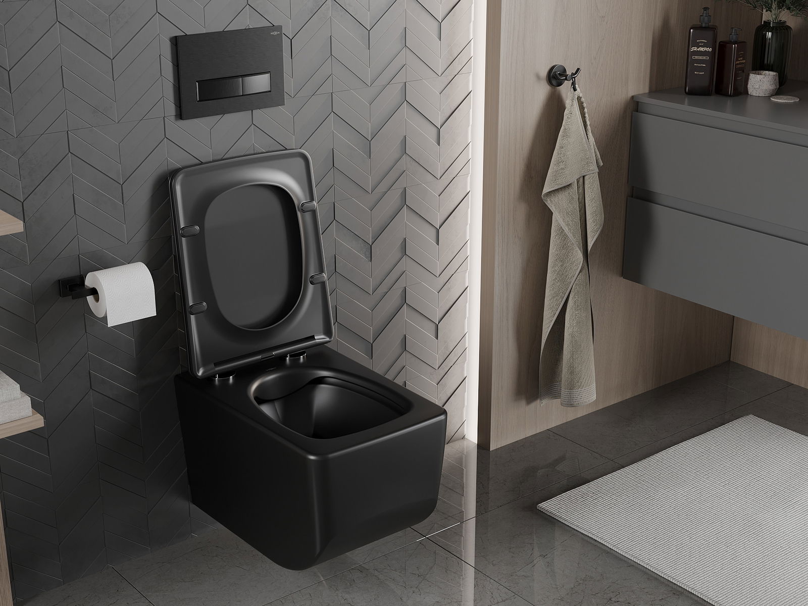 Mexen Vera cuvette WC sans rebord avec abattant à descente lente slim, duroplast, noir mat - 30164070