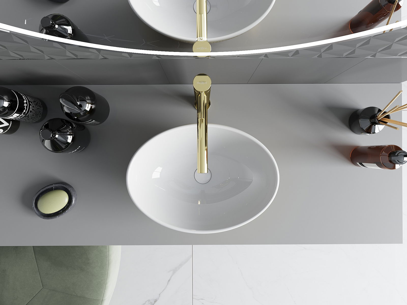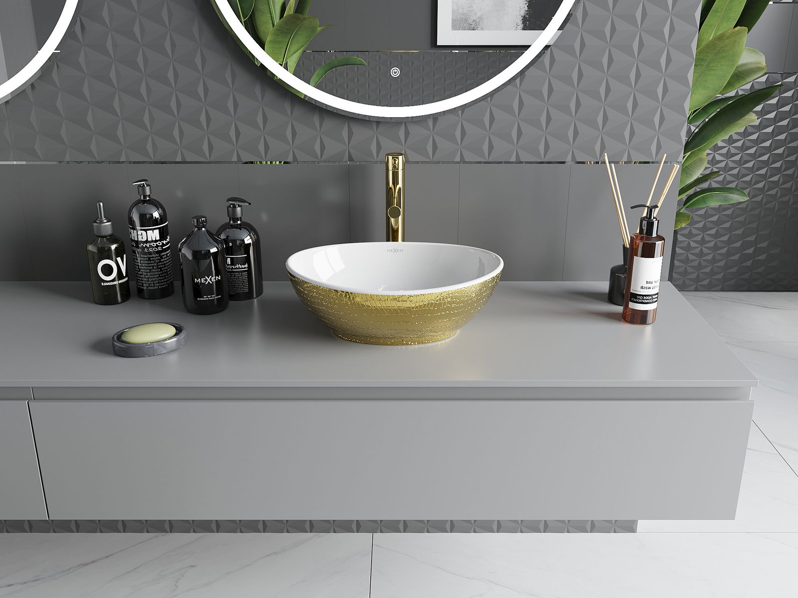 Mexen Elza lavabo à poser 40 x 33 cm, blanc/or motif écaille - 21014008