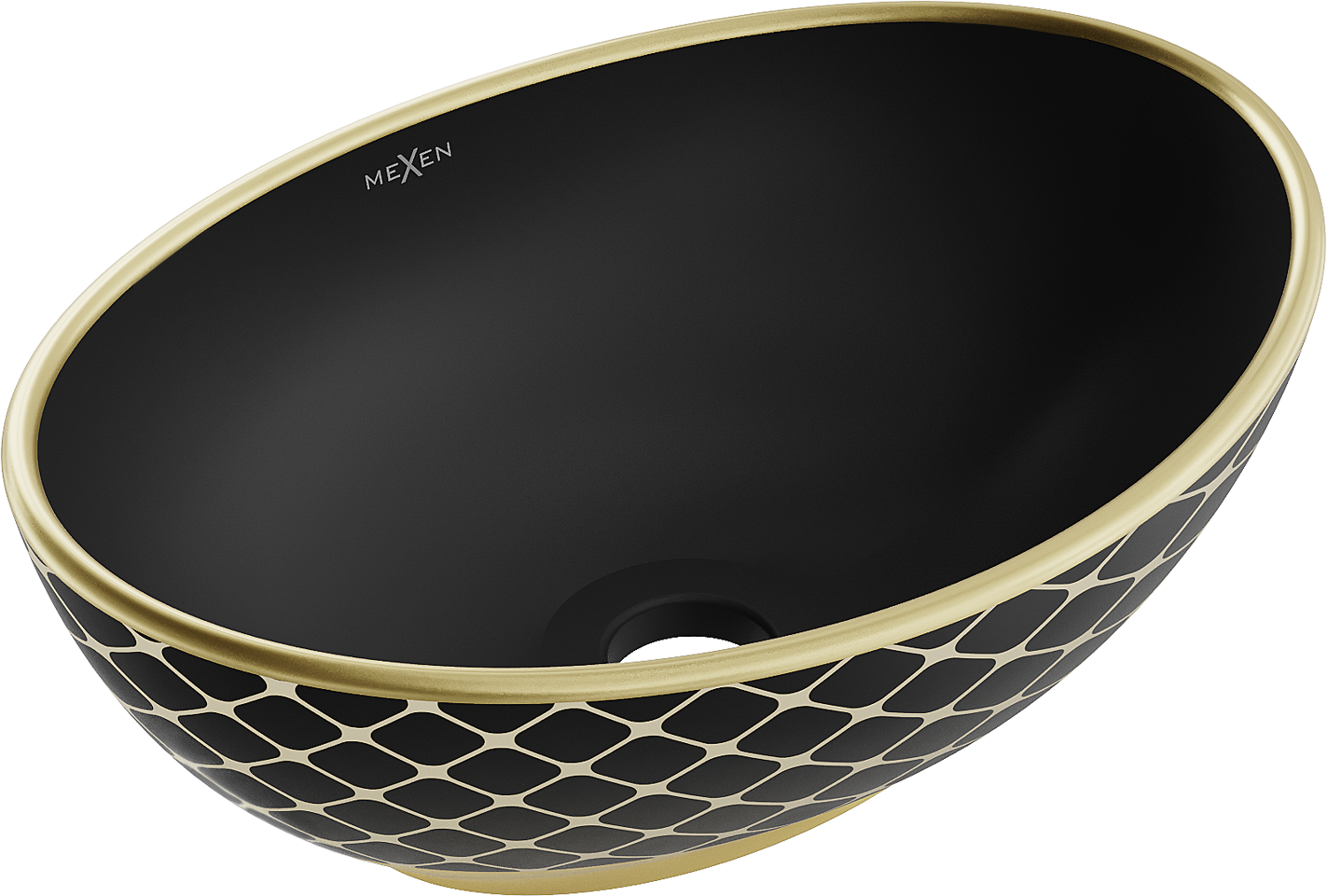 Mexen Elza lavabo à poser 40 x 33 cm, noir mat/motif treillis doré - 21014029