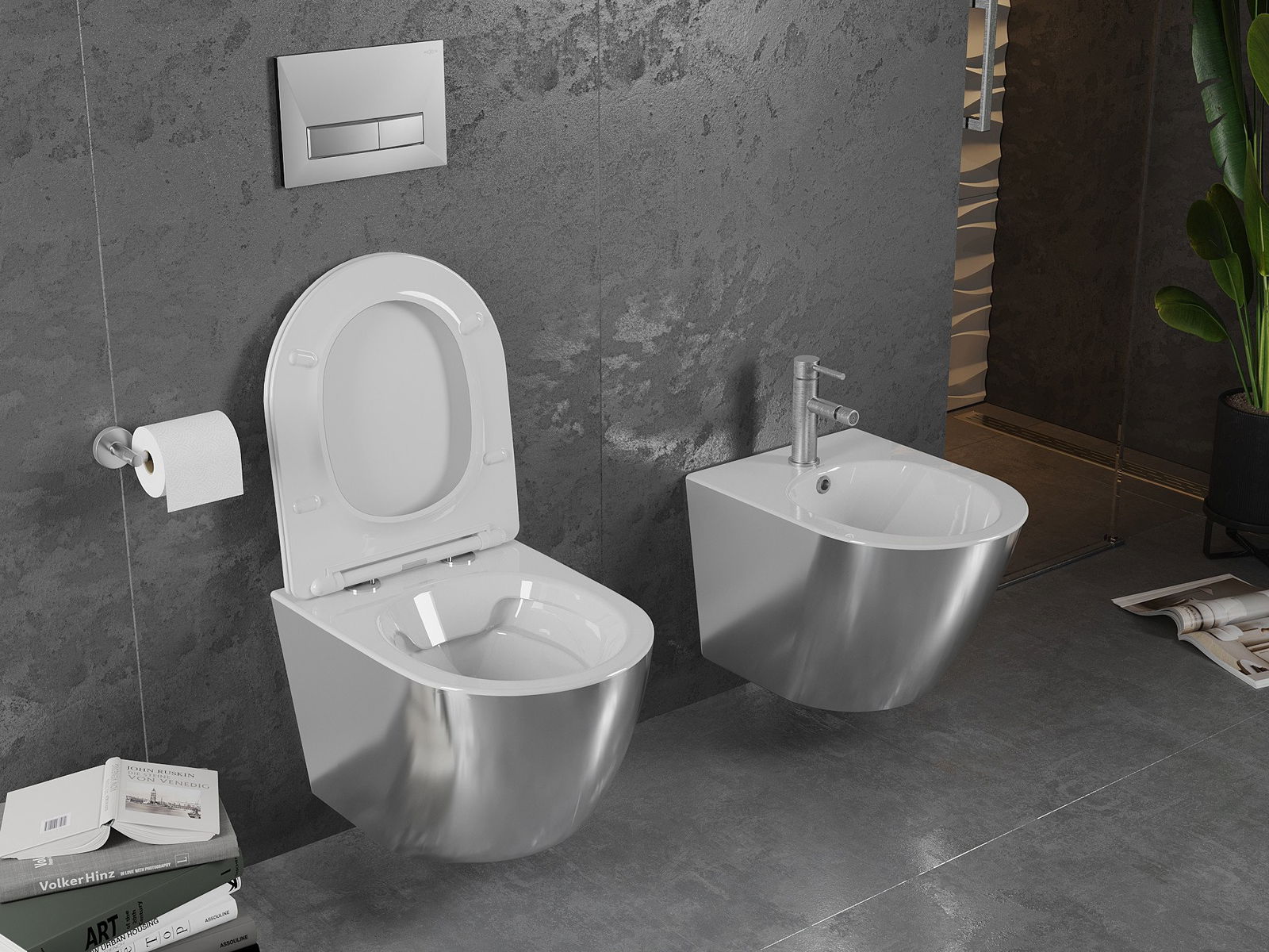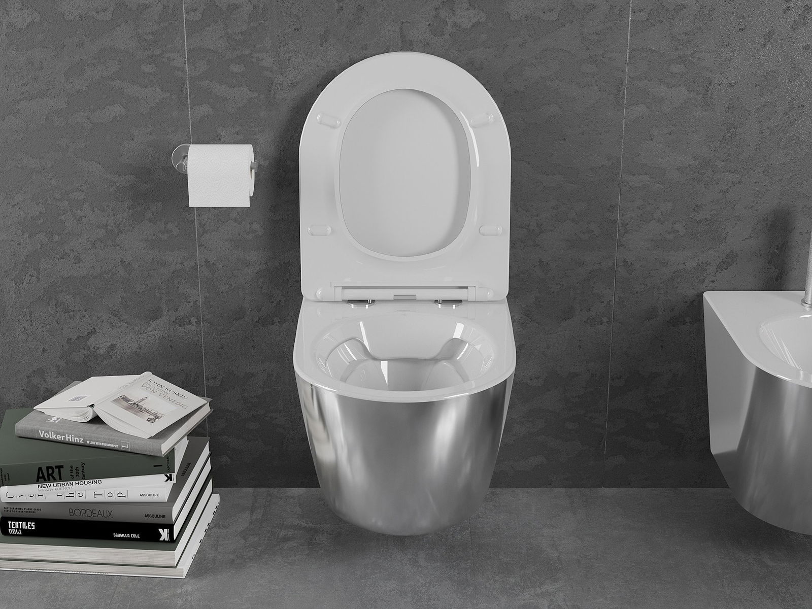 Mexen Lena cuvette WC Rimless avec abattant à descente lente slim, duroplast, blanc/argent - 30224004