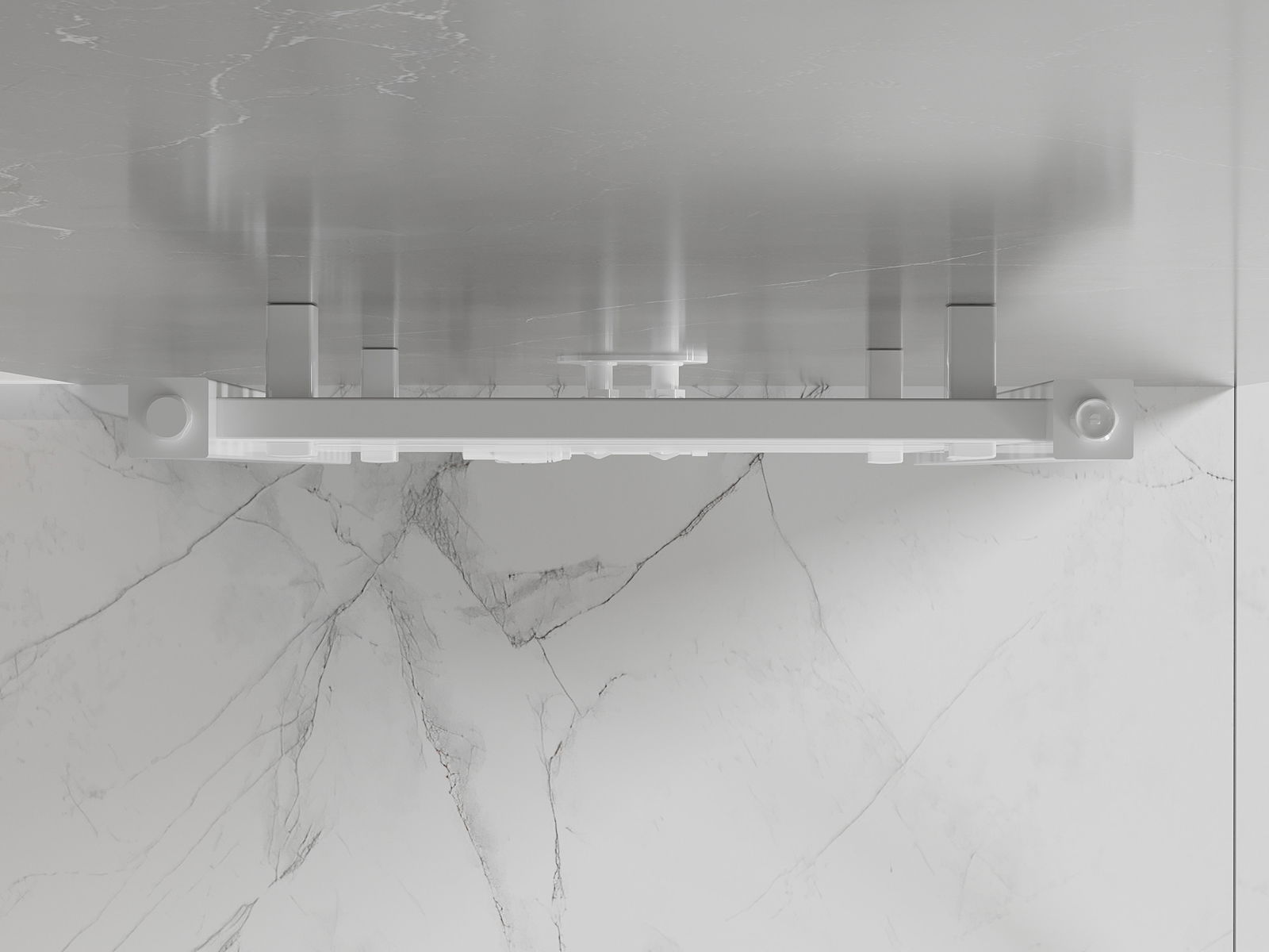 Inclus : suspensions, kit de montage, bouchons cache-écrous et purgeur