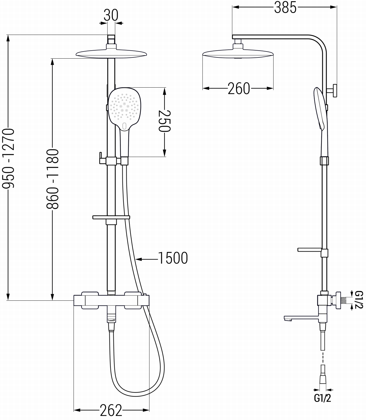 Mexen CQ22 ensemble bain-douche avec colonne de douche et robinet thermostatique, chrome - 779102295-00