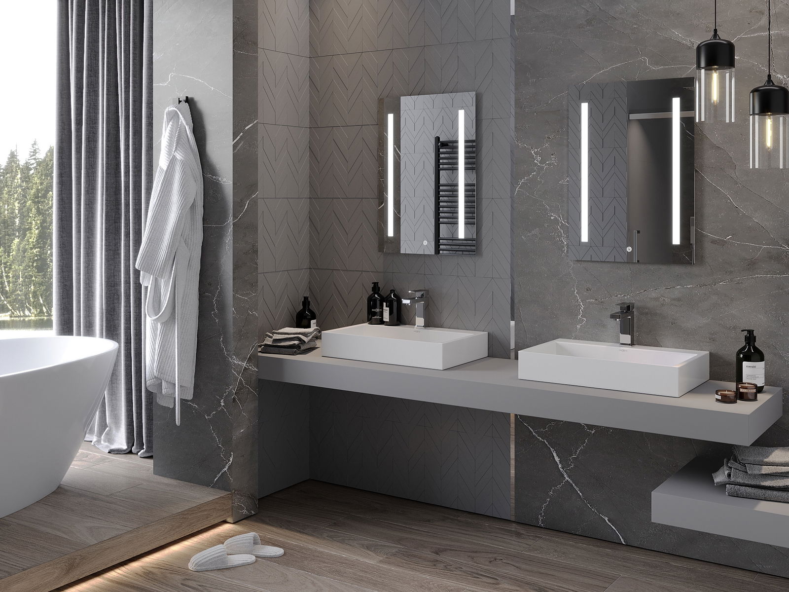 Le miroir est équipé d'un éclairage LED de couleur froide – 6000K. Il offre un éclairage intense et clair qui permet de remarquer même les plus petits détails. Idéal pour soutenir les soins quotidiens du visage.