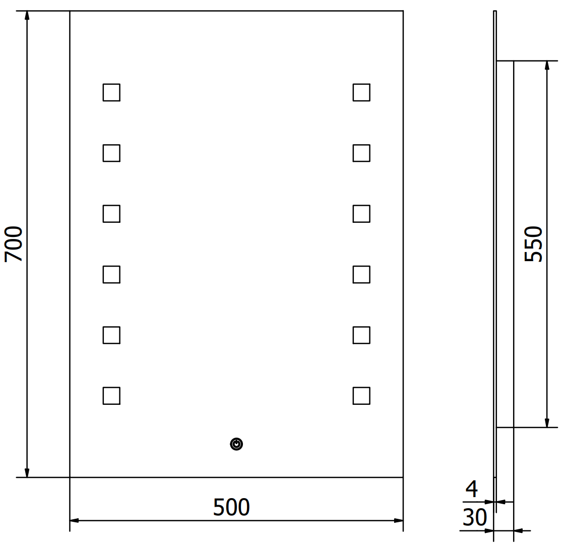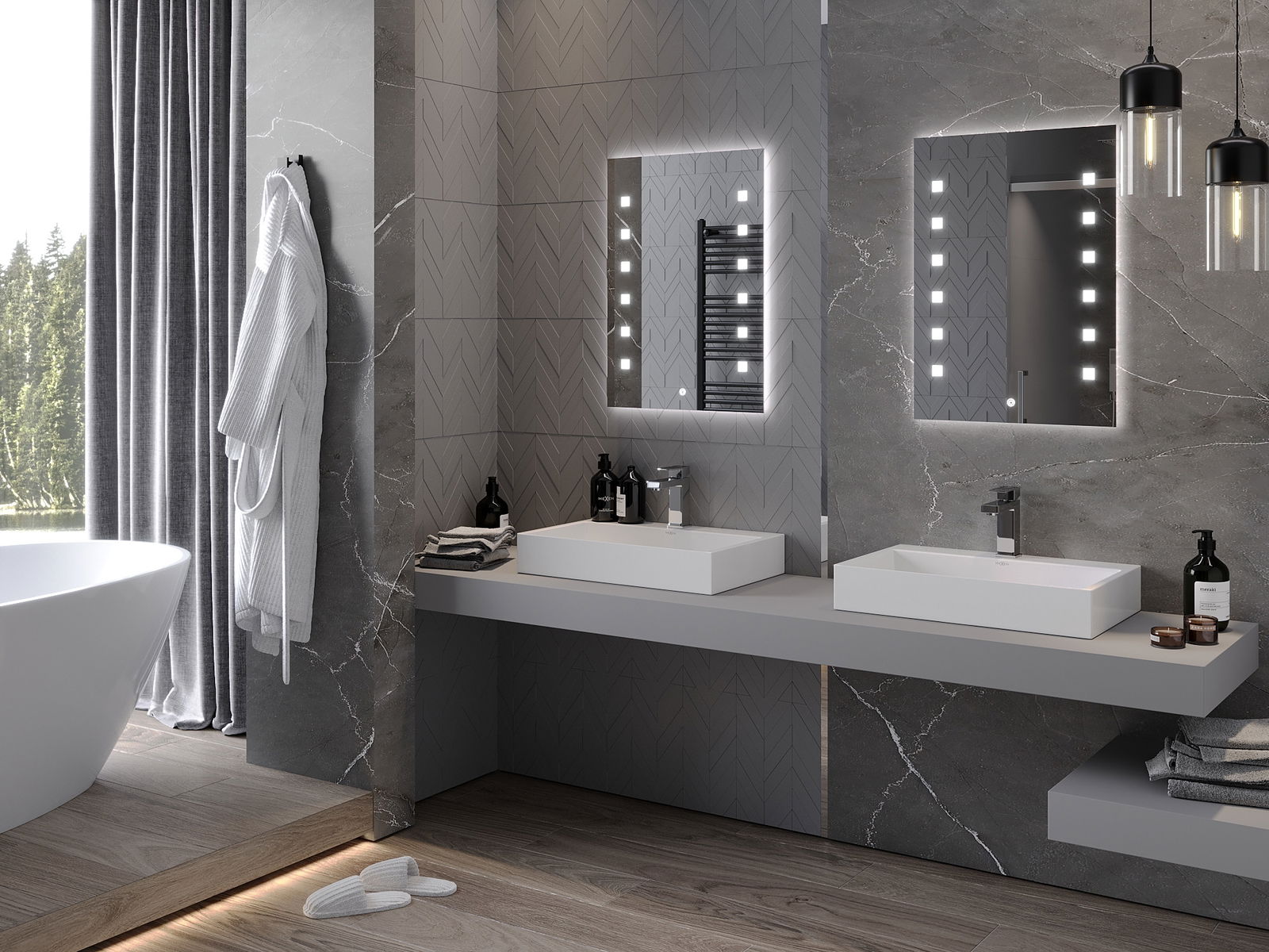 Le miroir est équipé d'un tapis chauffant qui, lorsqu'il est activé, empêche la formation de buée