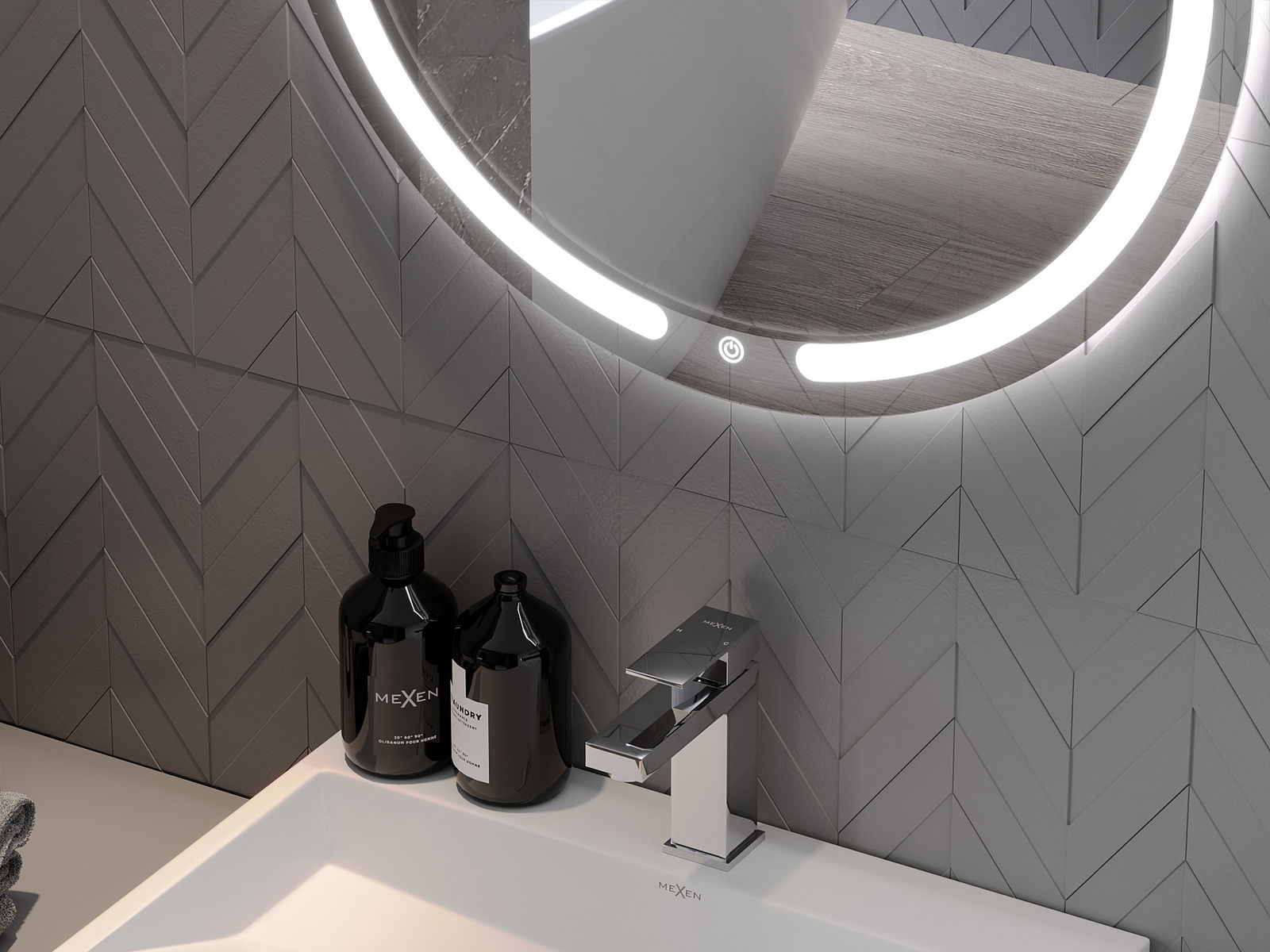 L'éclairage LED autour du miroir est un élément pratique qui facilite les soins quotidiens en offrant la possibilité d'éclairer parfaitement le visage. L'éclairage donne à la salle de bain une finition moderne, soulignant son décor élégant.