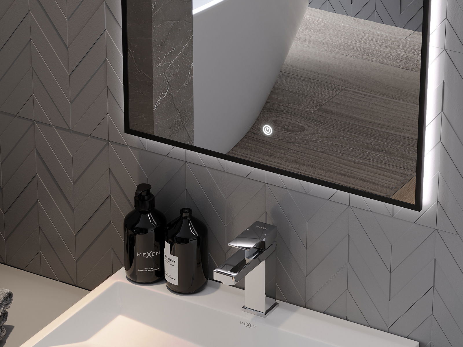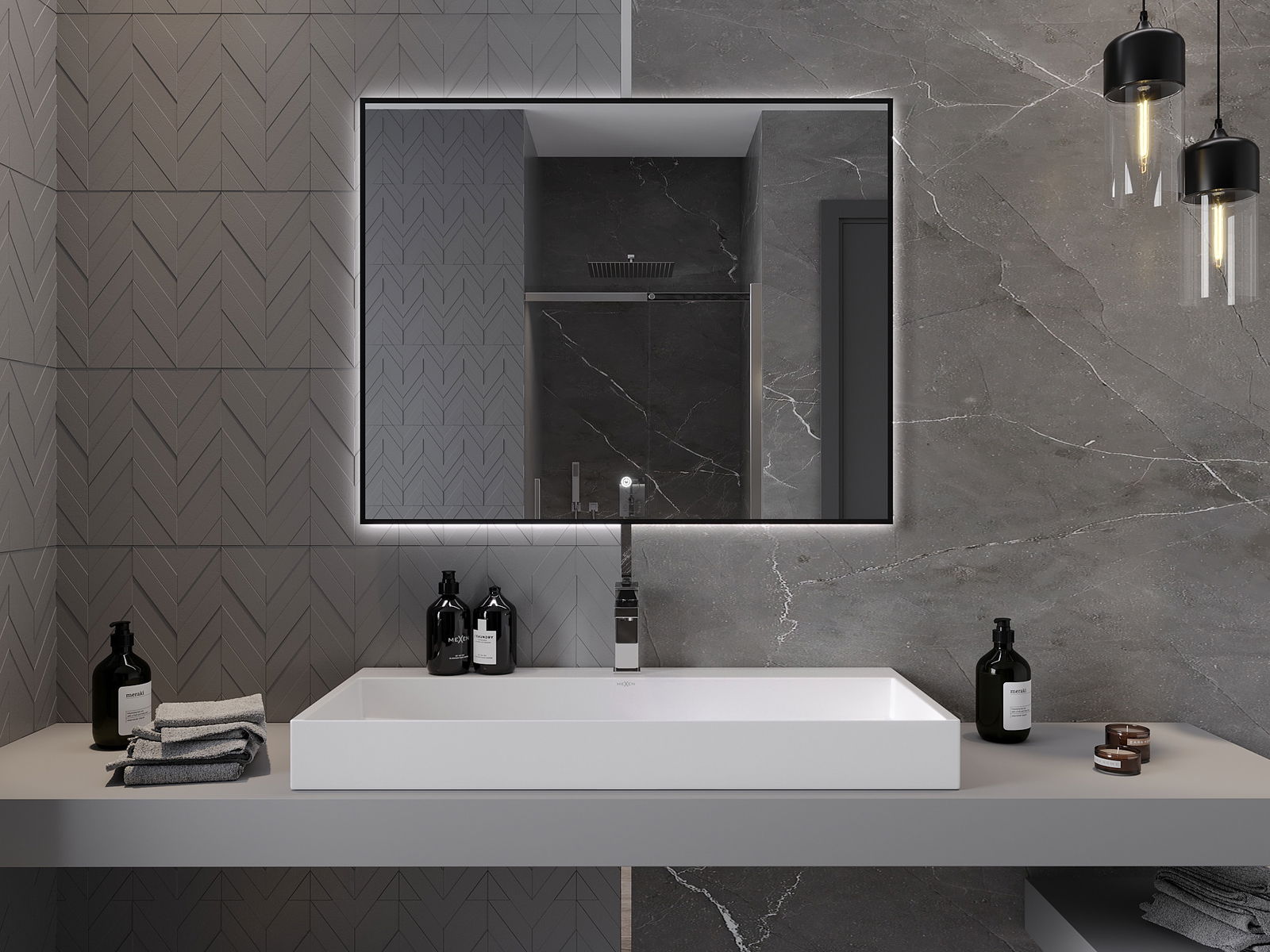 L'éclairage LED autour du miroir est un élément pratique qui facilite les soins quotidiens en offrant la possibilité d'éclairer parfaitement le visage. L'éclairage donne à la salle de bain une finition moderne, soulignant son décor élégant.