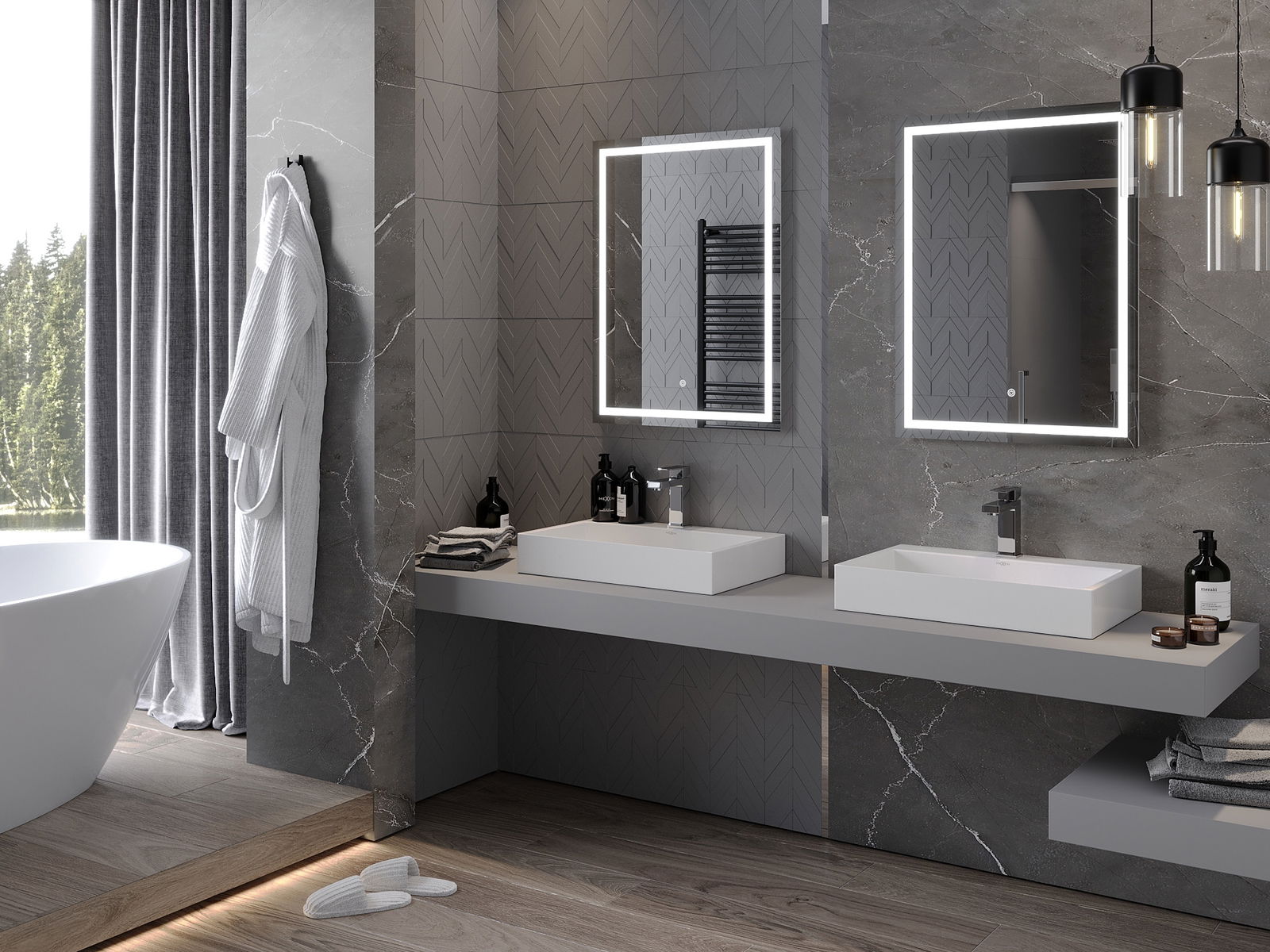 L'éclairage LED près du miroir est un élément pratique qui facilite les soins quotidiens, car il permet d'éclairer parfaitement le visage. Cet éclairage confère à la salle de bains une touche de modernité et souligne son élégance.