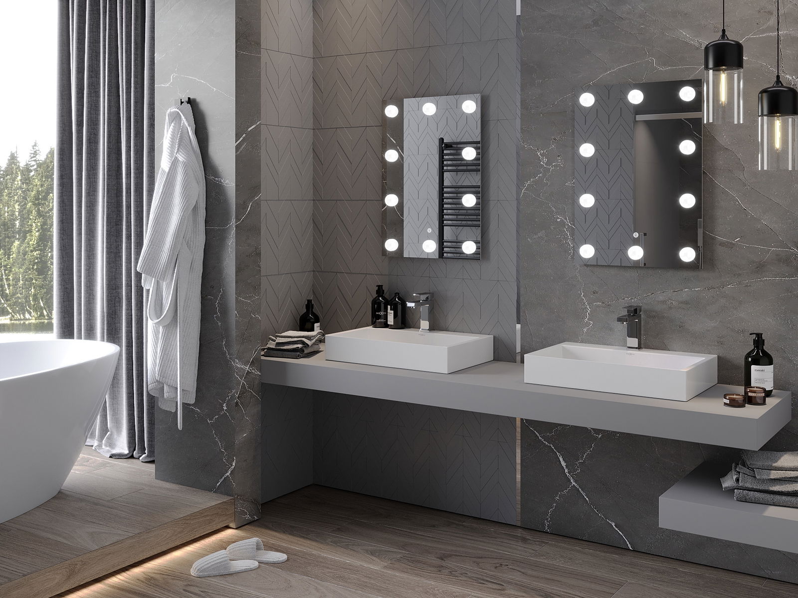 L'éclairage LED près du miroir est un élément pratique qui facilite les soins quotidiens, car il permet d'éclairer parfaitement le visage. Cet éclairage confère à la salle de bains une touche de modernité et souligne son élégance.