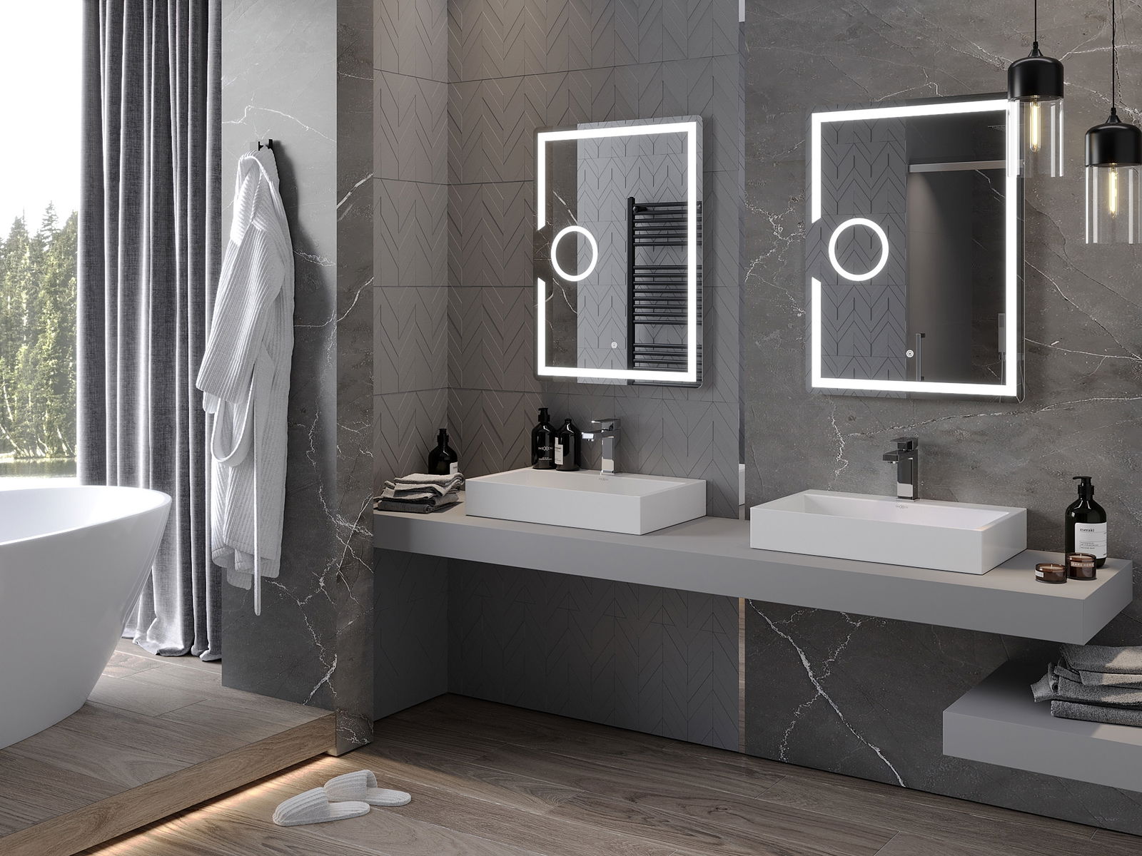 Mexen Onyx miroir de salle de bain rétroéclairé avec miroir cosmétique 60 x 80 cm, LED 6000K, antibuée - 9813-060-080-611-00