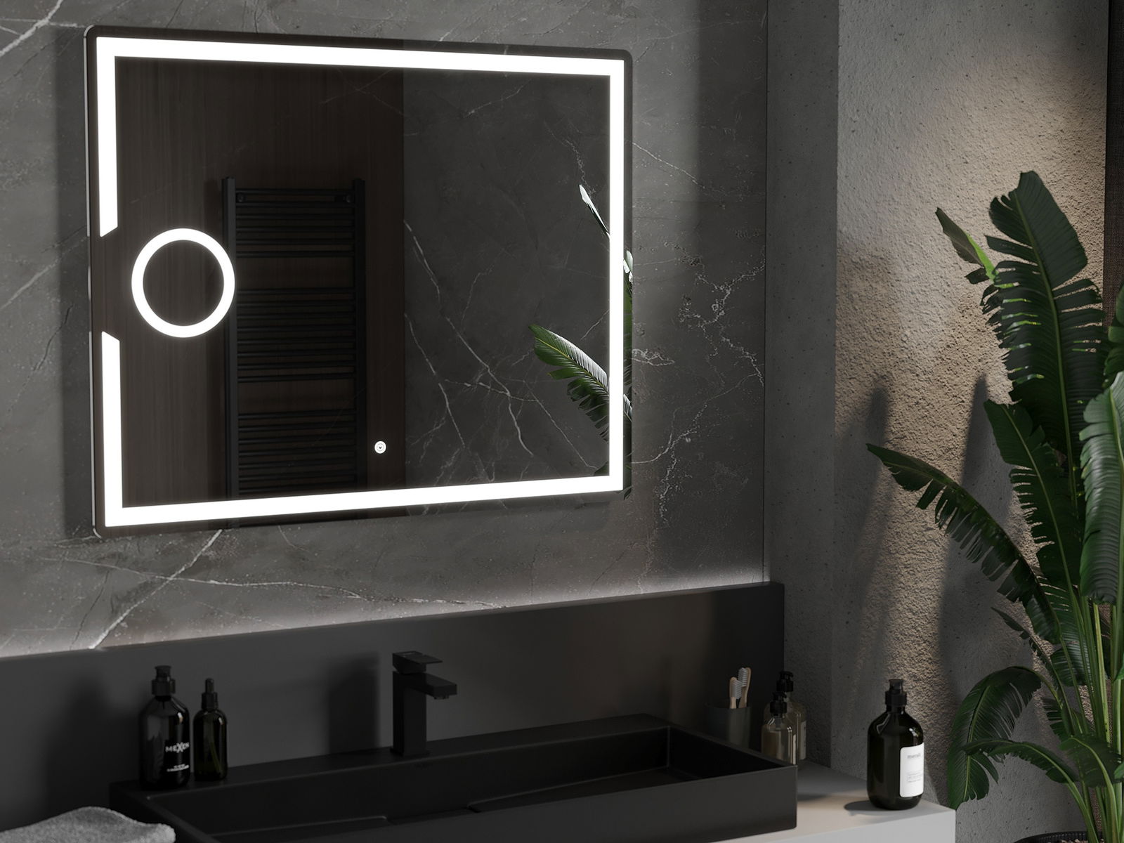 Mexen Onyx miroir de salle de bain éclairé avec miroir de courtoisie 100 x 80 cm, LED 6000K, anti-buée - 9813-100-080-611-00