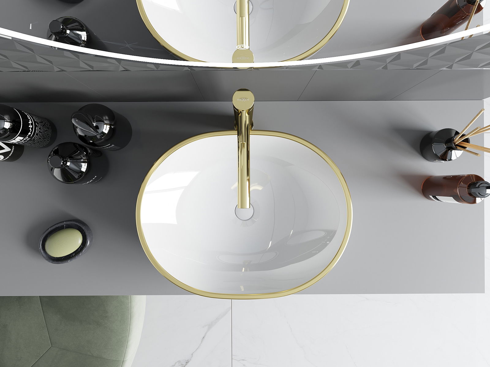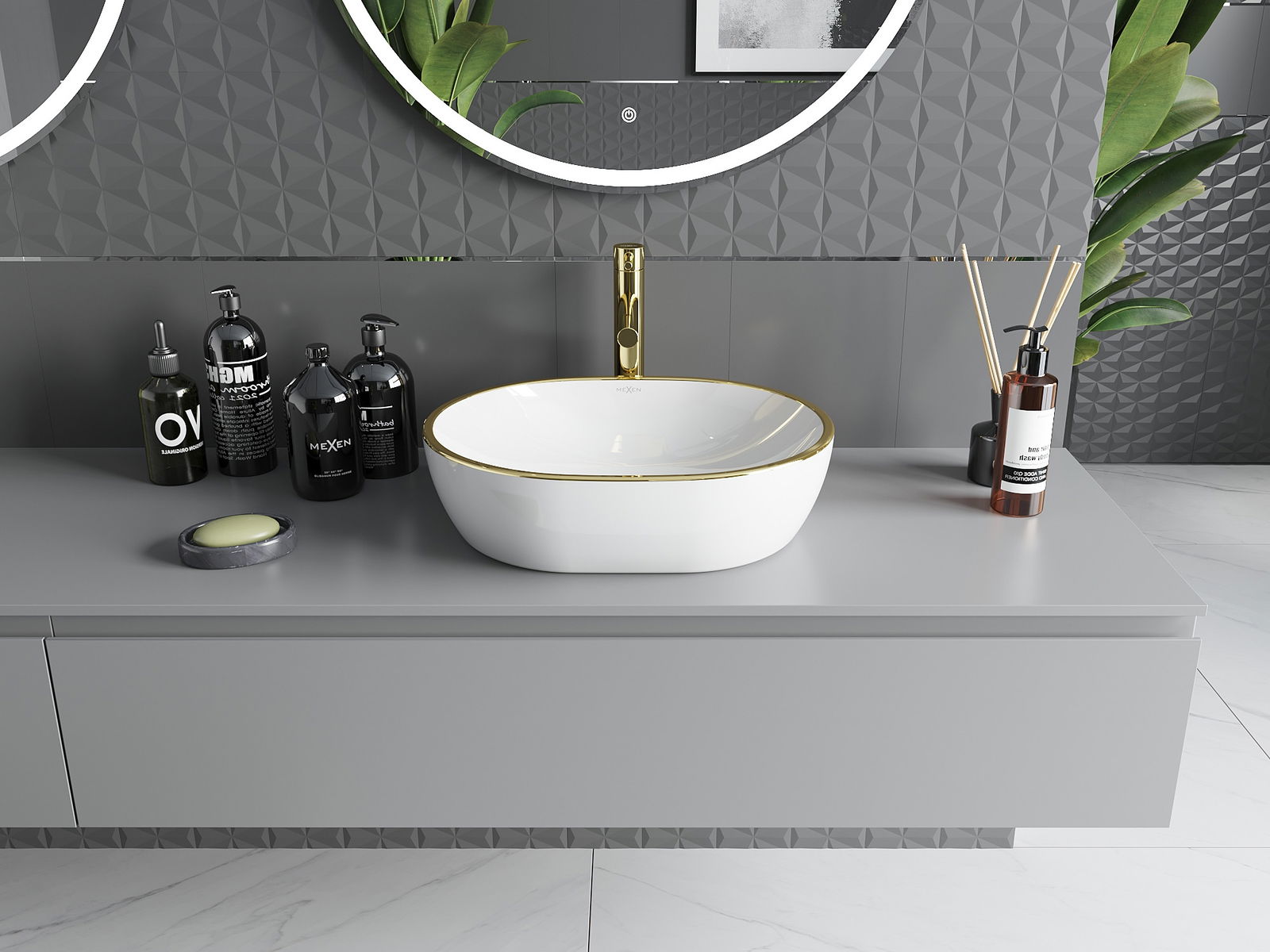 Mexen Viki lavabo sur plan 48 x 35 cm, blanc/rebord doré - 21054805