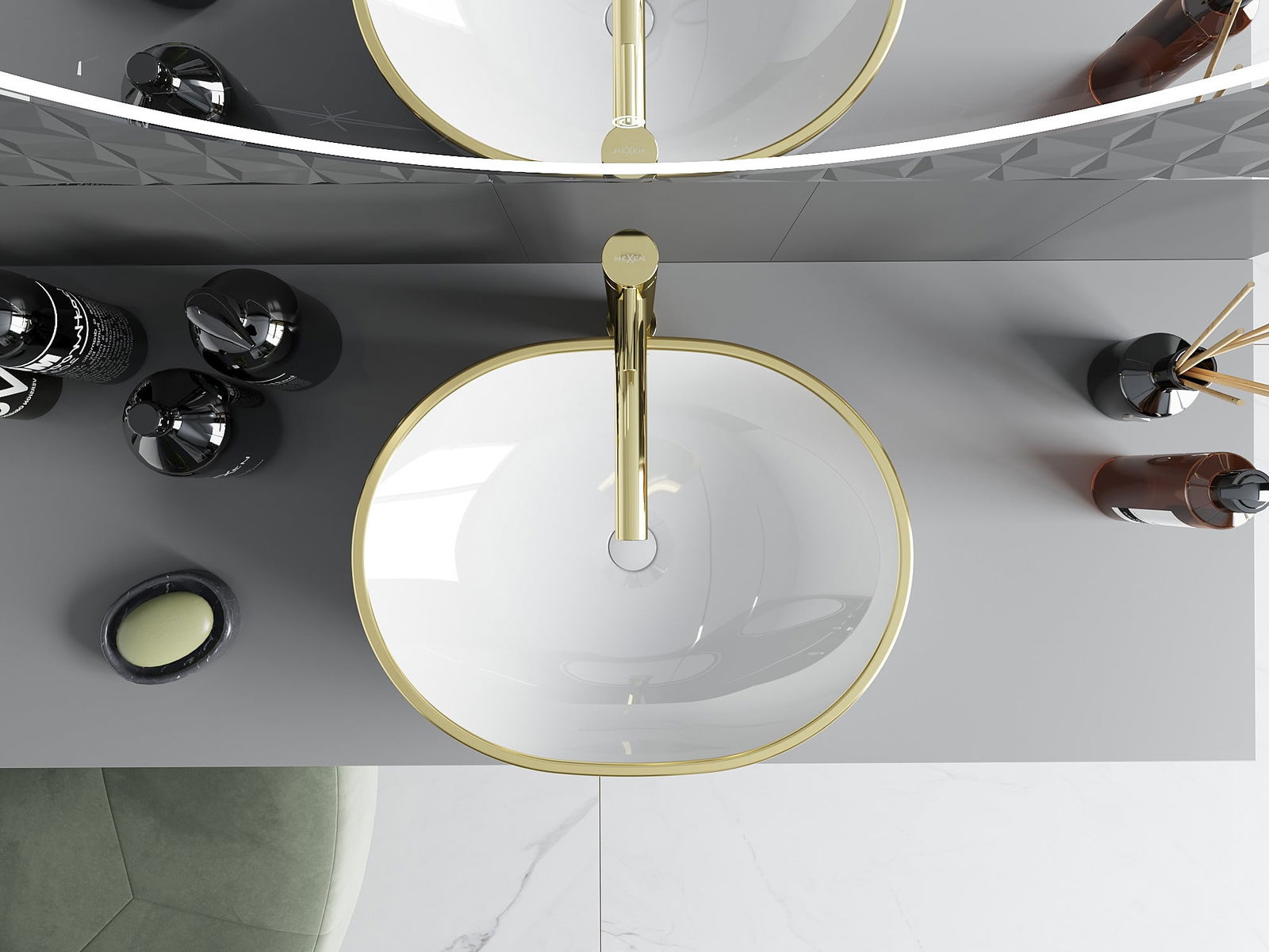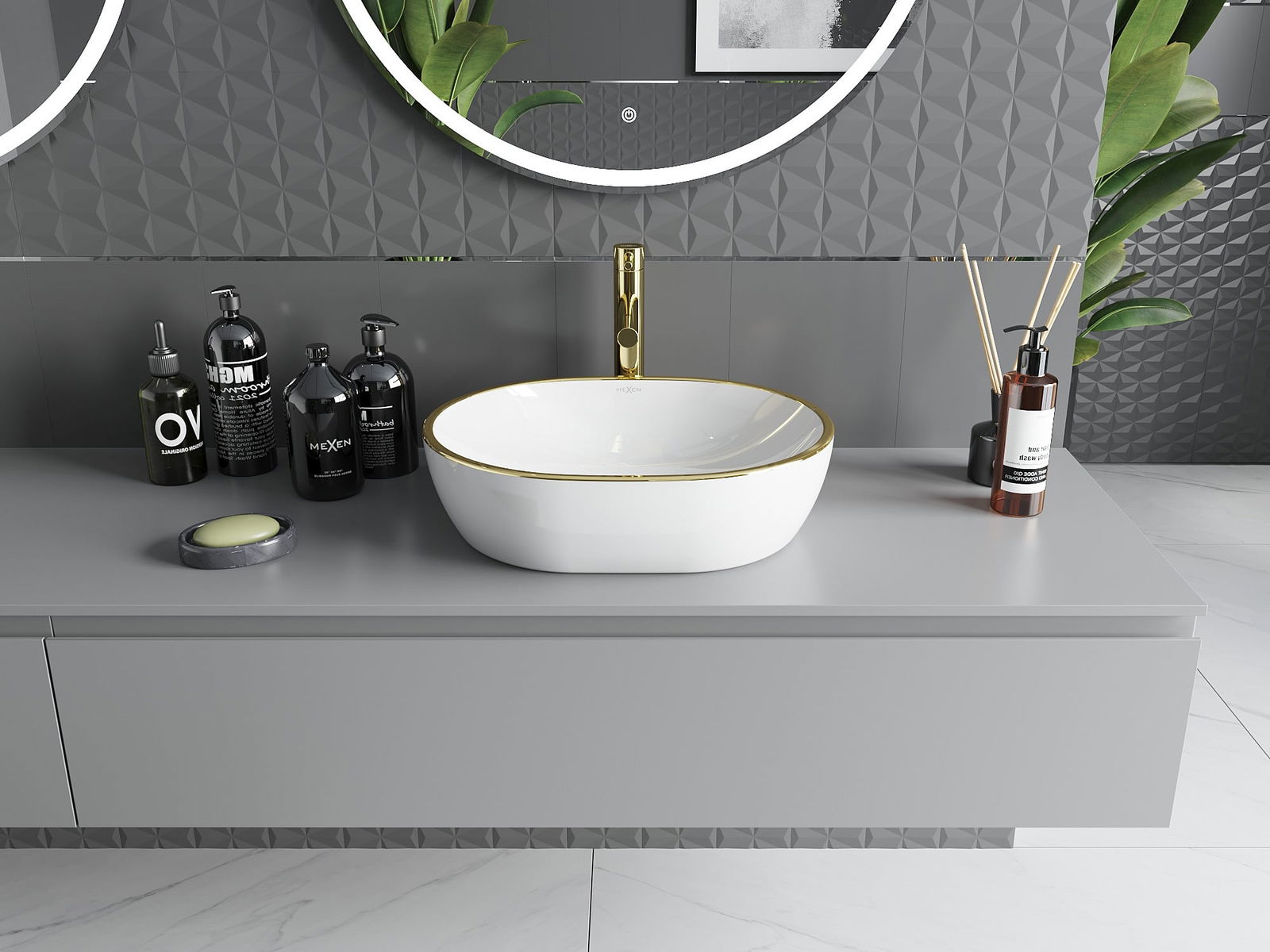 Mexen Viki vasque à poser 48 x 35 cm, blanche/bord doré - 21054805