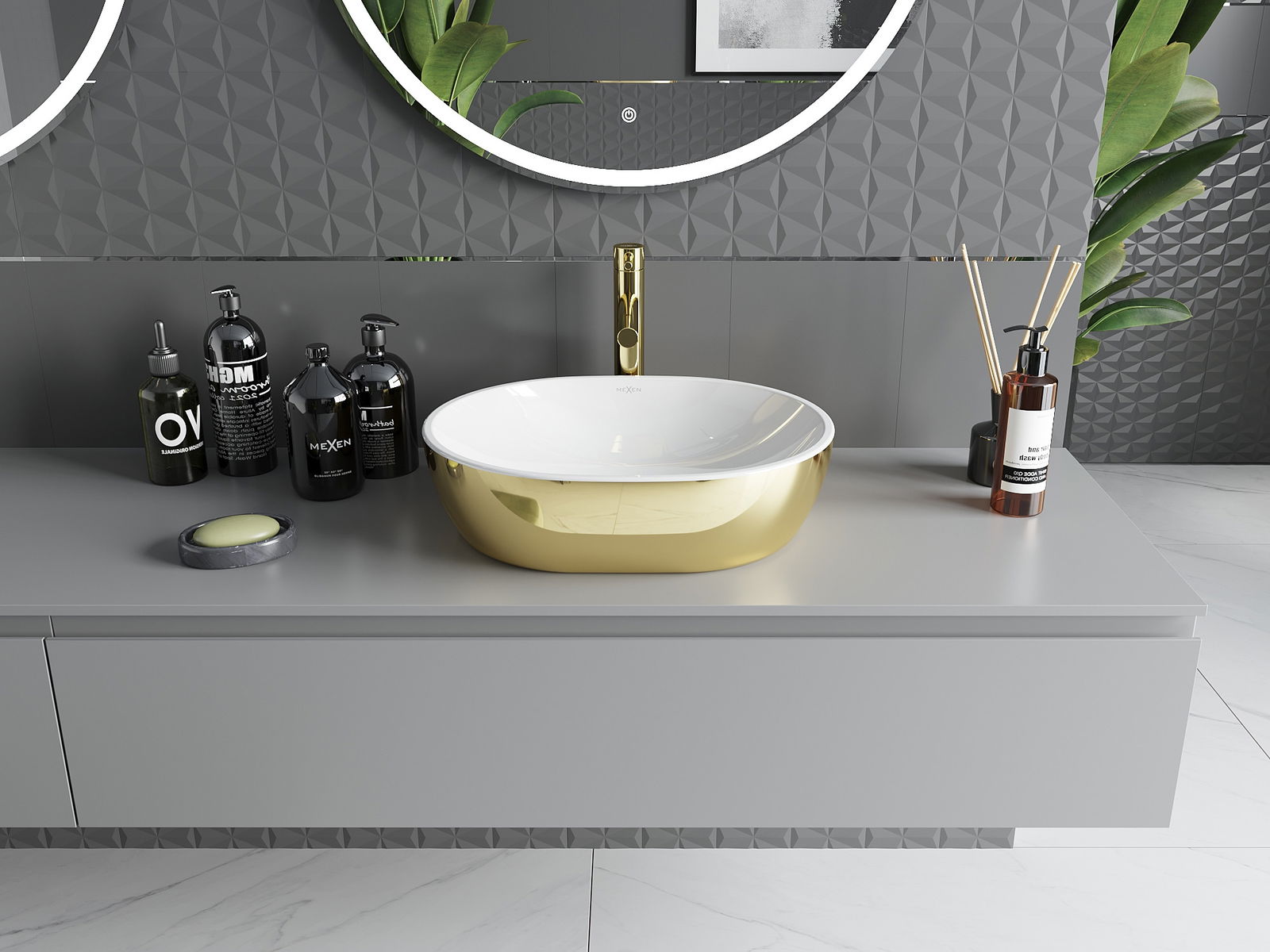 Mexen Viki lavabo à poser 48 x 35 cm, blanc/doré - 21054806