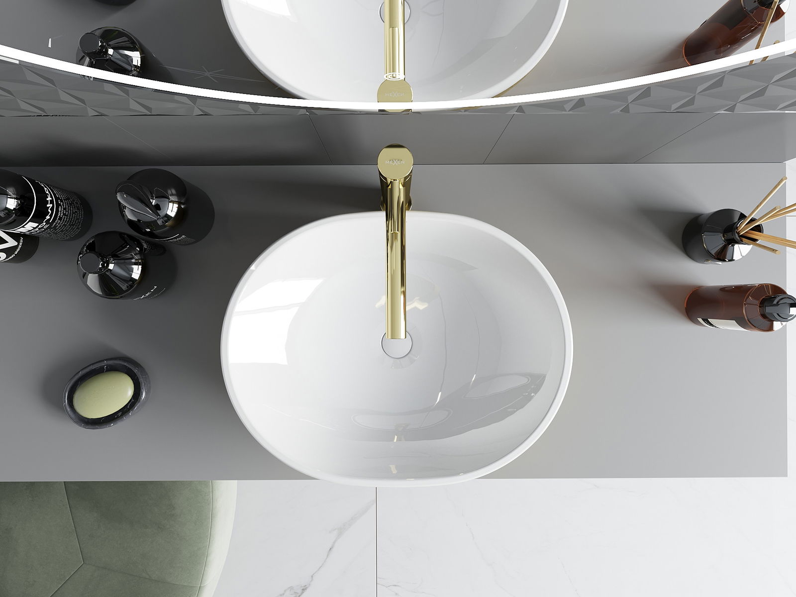 Mexen Viki lavabo à poser 48 x 35 cm, blanc/doré motif lignes - 21054817