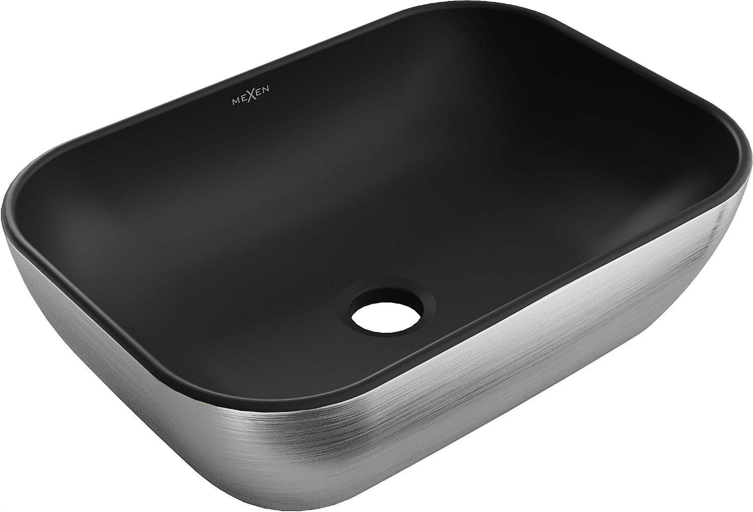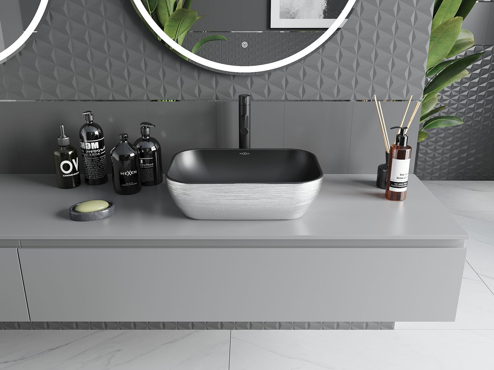 Mexen Rita lavabo à poser 45 x 32 cm, noir mat/motif lignes argent - 21084573