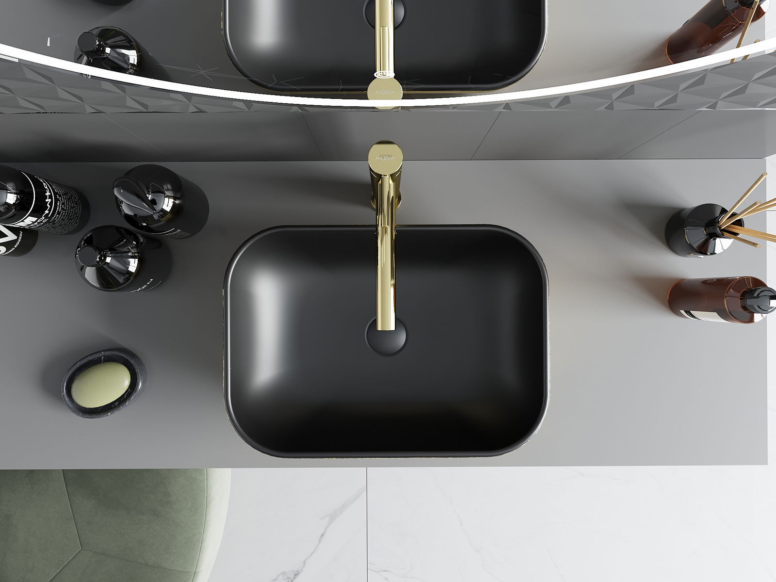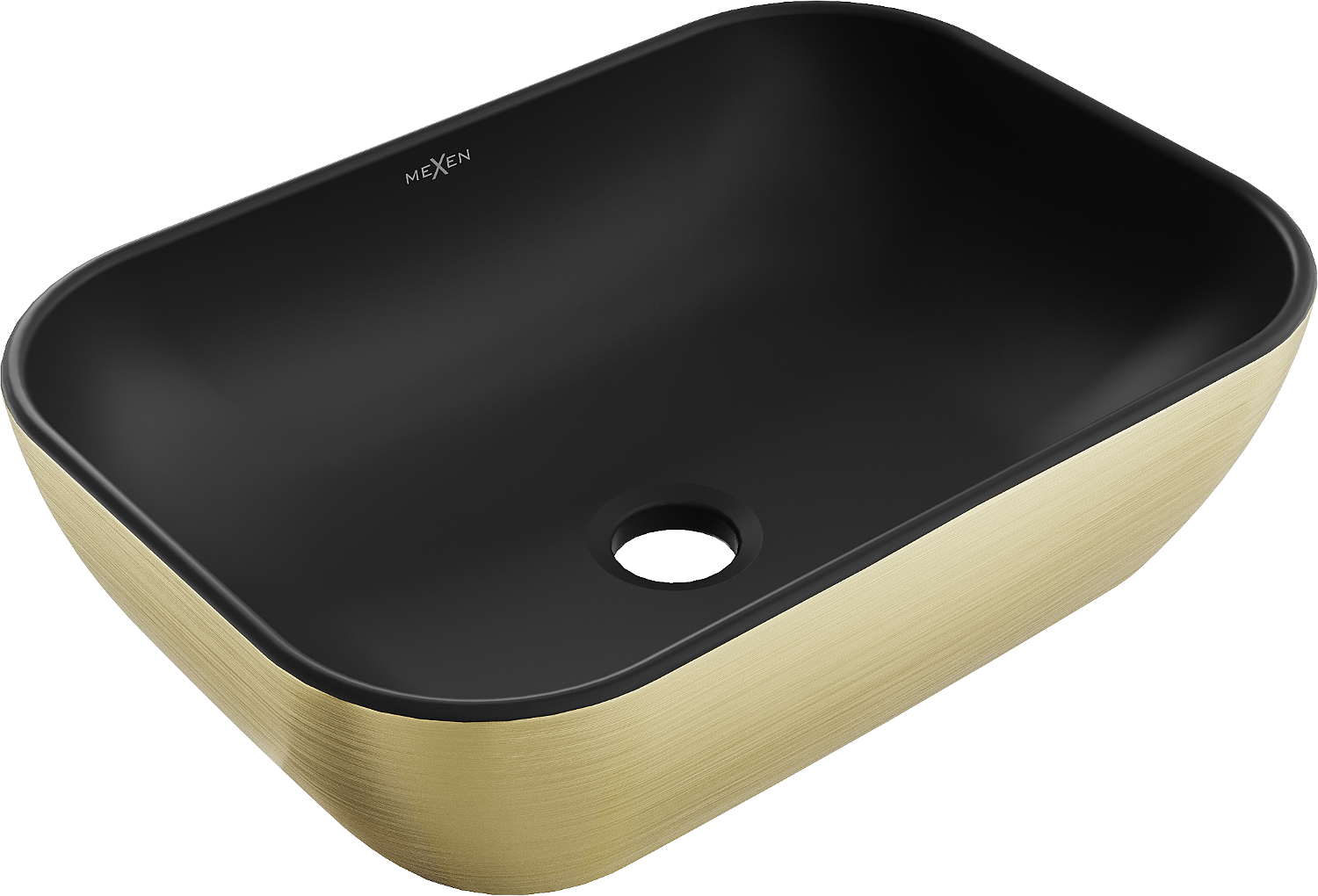 Mexen Rita lavabo à poser 45 x 32 cm, noir mat/doré motif lignes - 21084577
