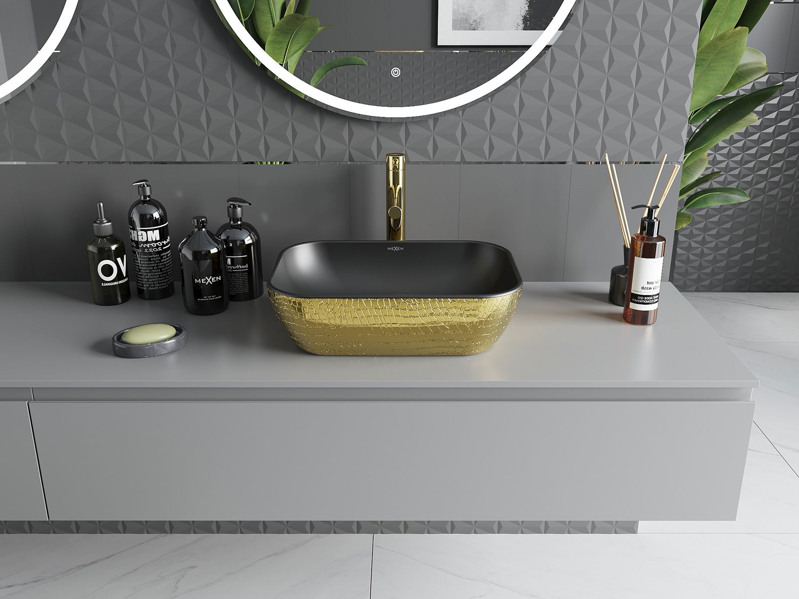 Mexen Rita lavabo à poser 45 x 32 cm, noir mat/motif doré écailles - 21084578