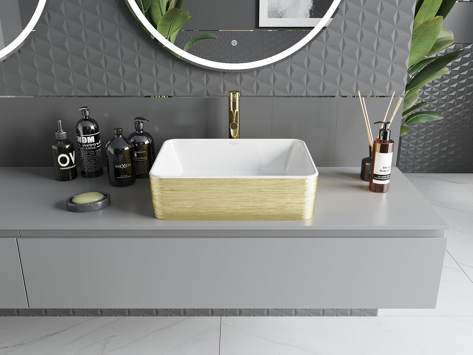 Mexen Catia lavabo à poser 48 x 38 cm, blanc/doré motif lignes - 21314817