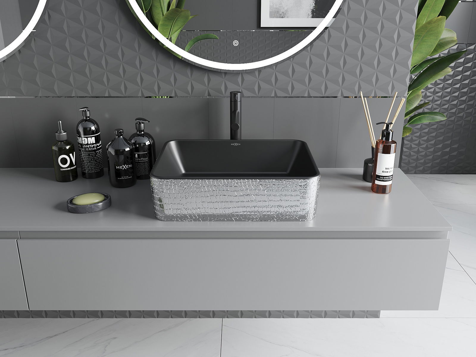 Mexen Catia lavabo à poser 48 x 37 cm, noir mat/motif écaille argent - 21314872