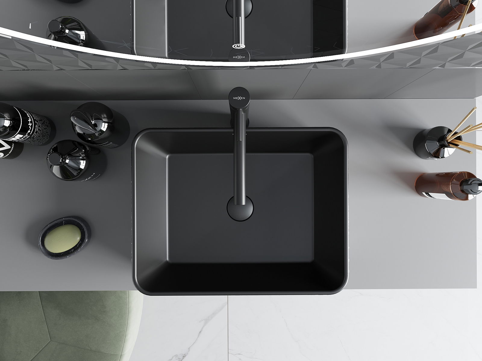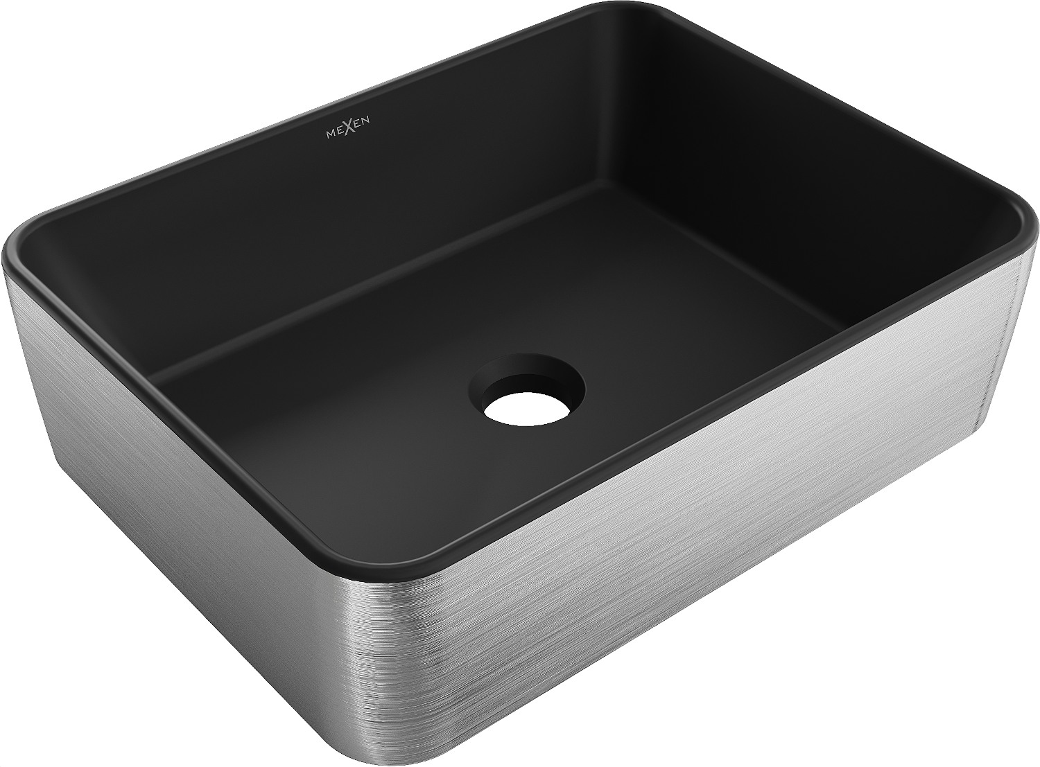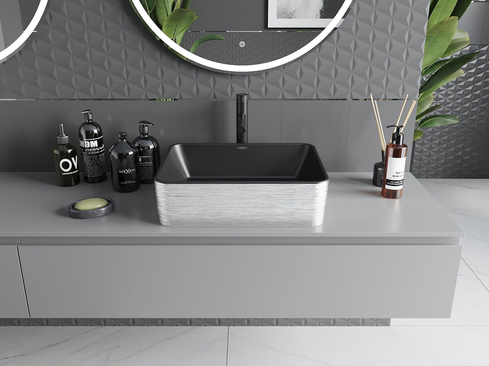 Mexen Catia lavabo à poser 48 x 37 cm, noir mat/motif lignes argentées - 21314873
