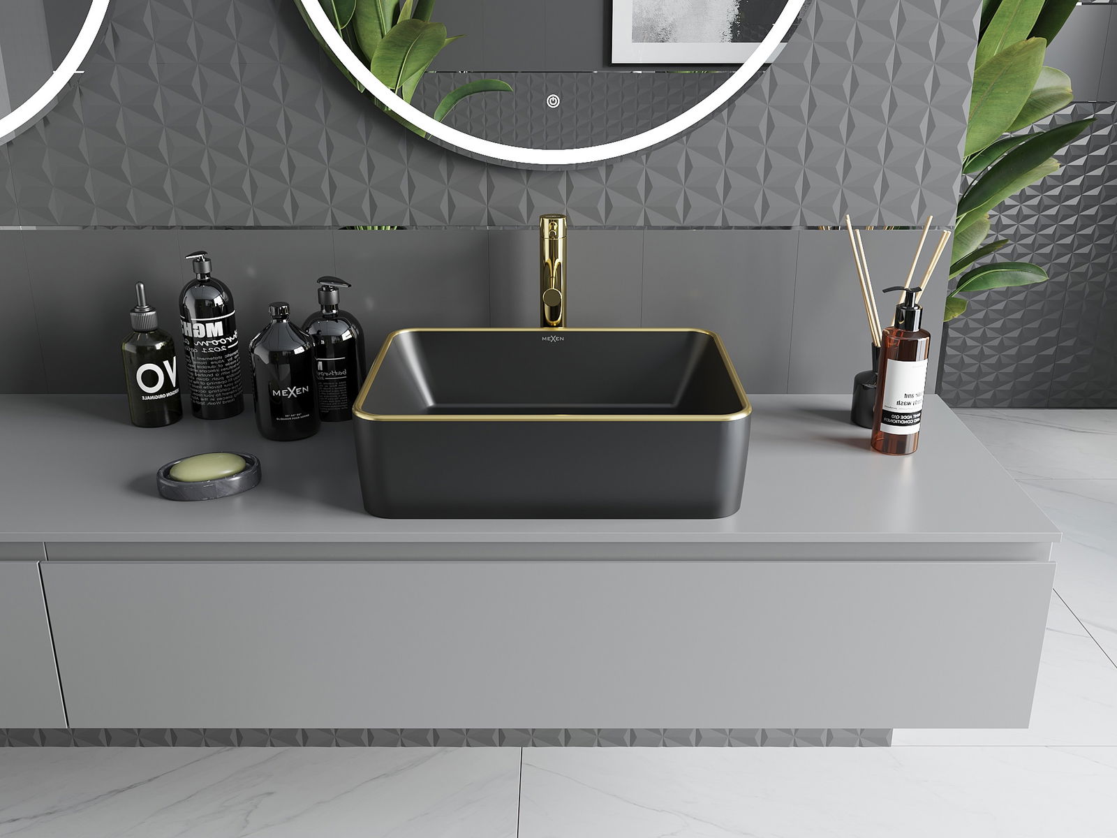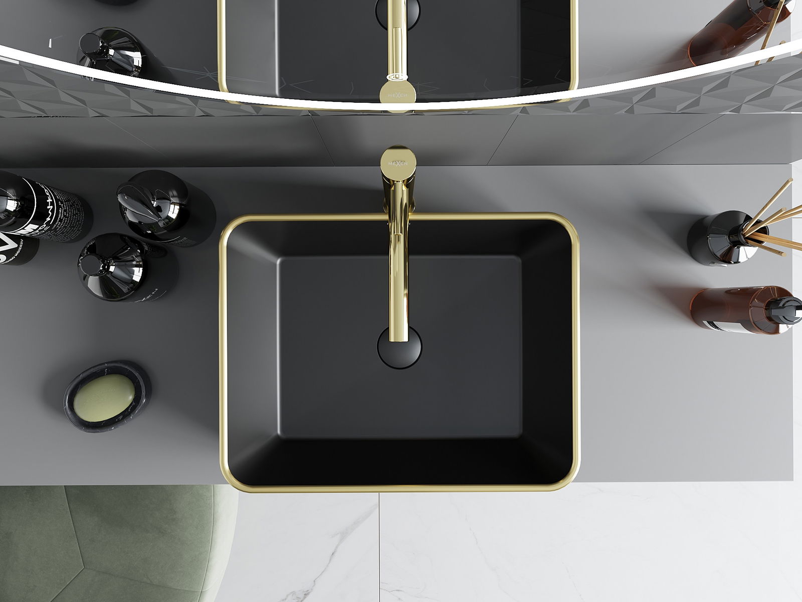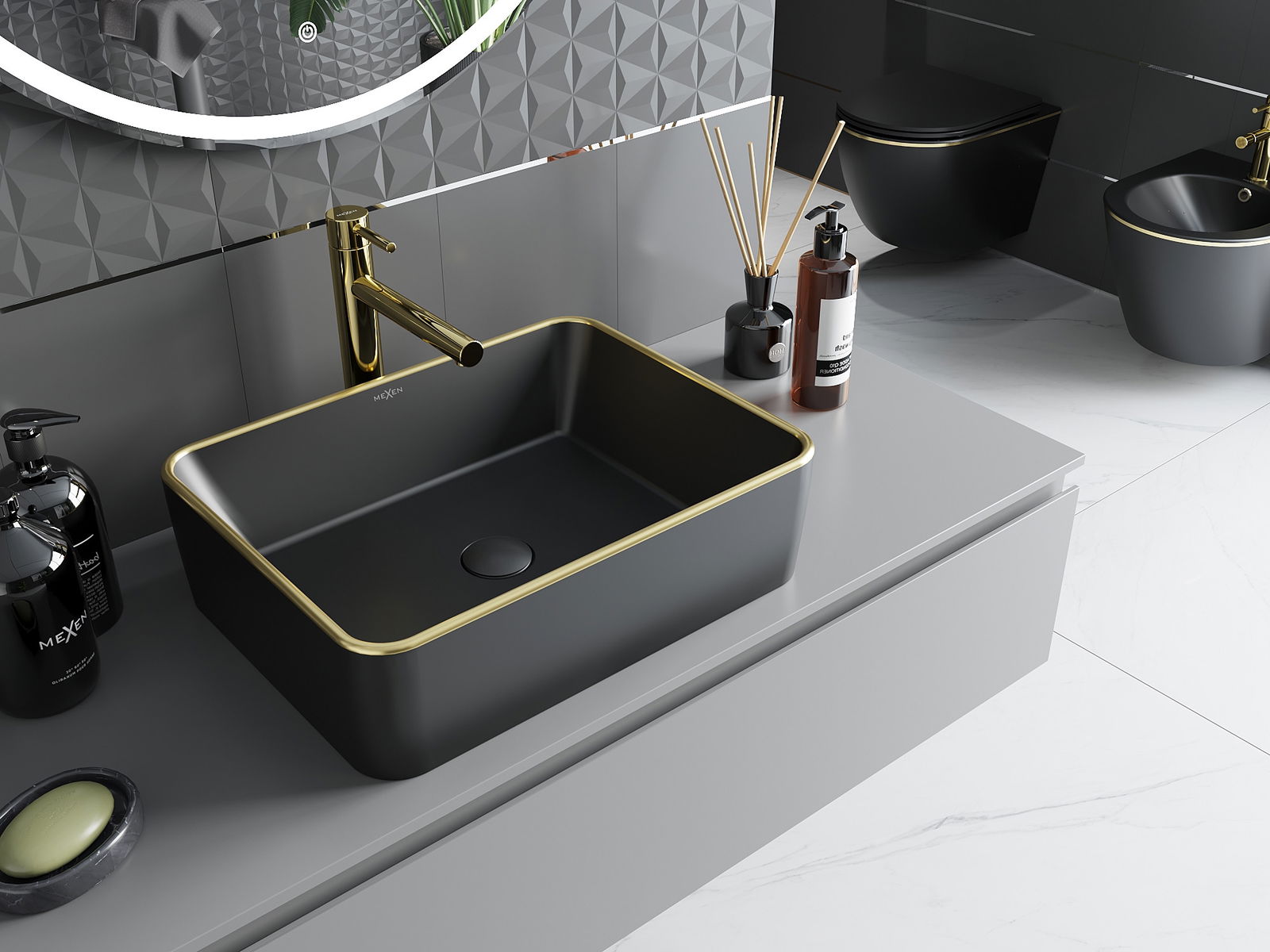 Mexen Catia lavabo à poser 48 x 37 cm, noir mat/bord doré - 21314875