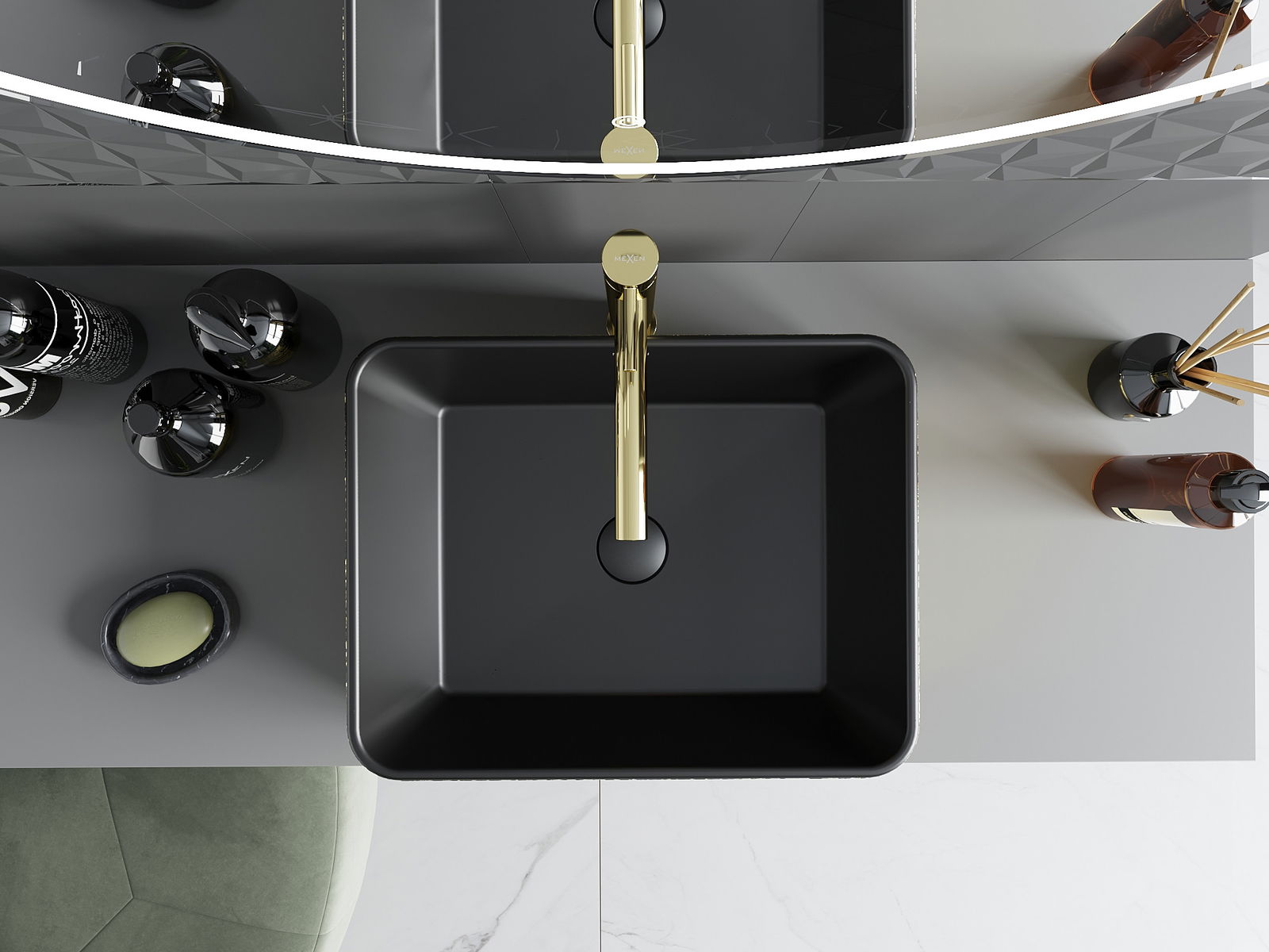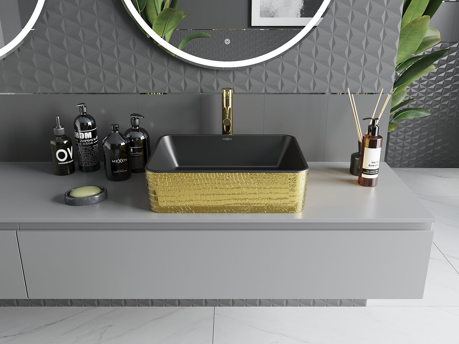 Mexen Catia lavabo à poser 48 x 37 cm, noir mat/motif écaille dorée - 21314878