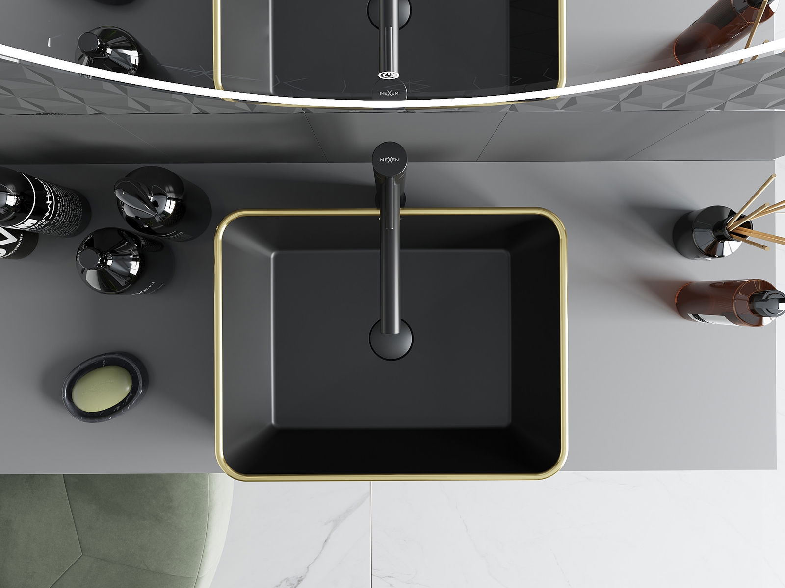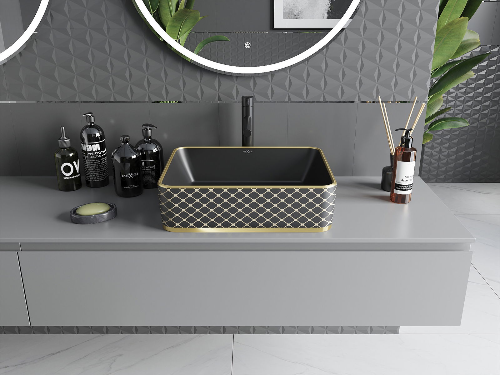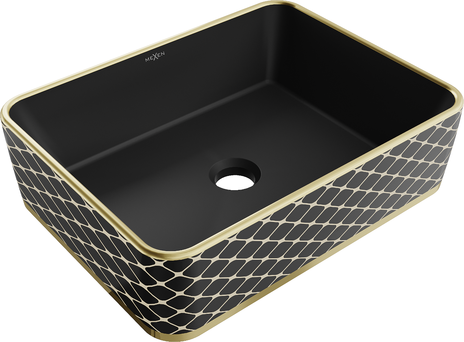Mexen Catia lavabo à poser 48 x 37 cm, noir mat/motif à carreaux doré - 21314879