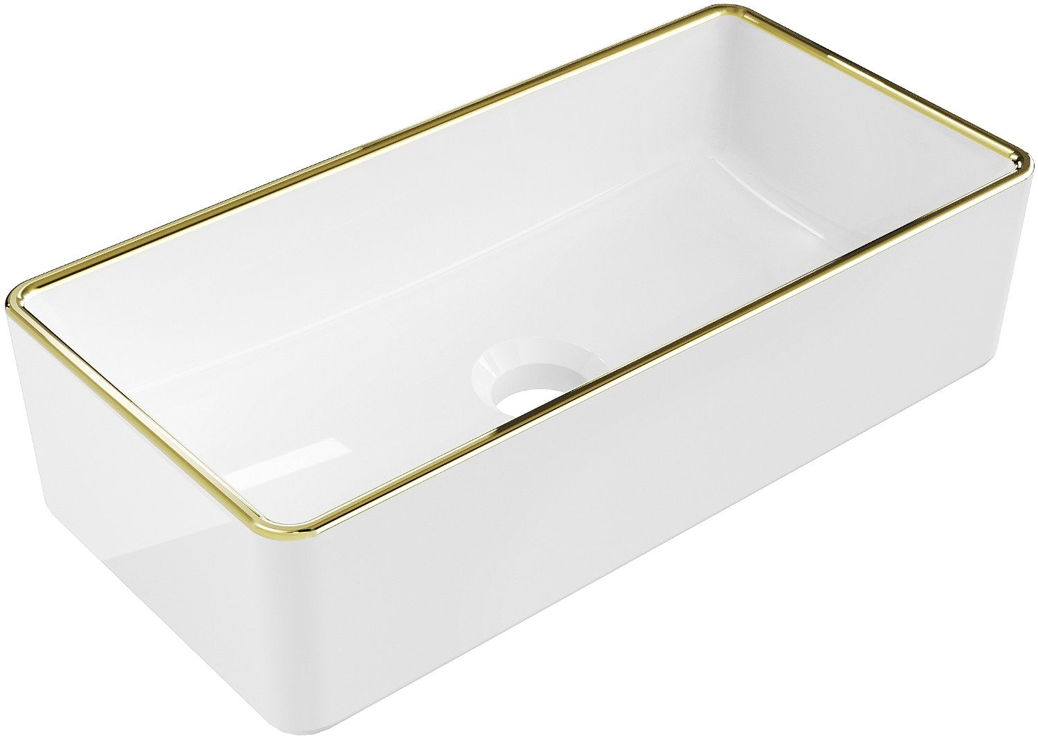 Mexen Nadia lavabo à poser 46 x 23 cm, blanc/or bord doré - 21614605