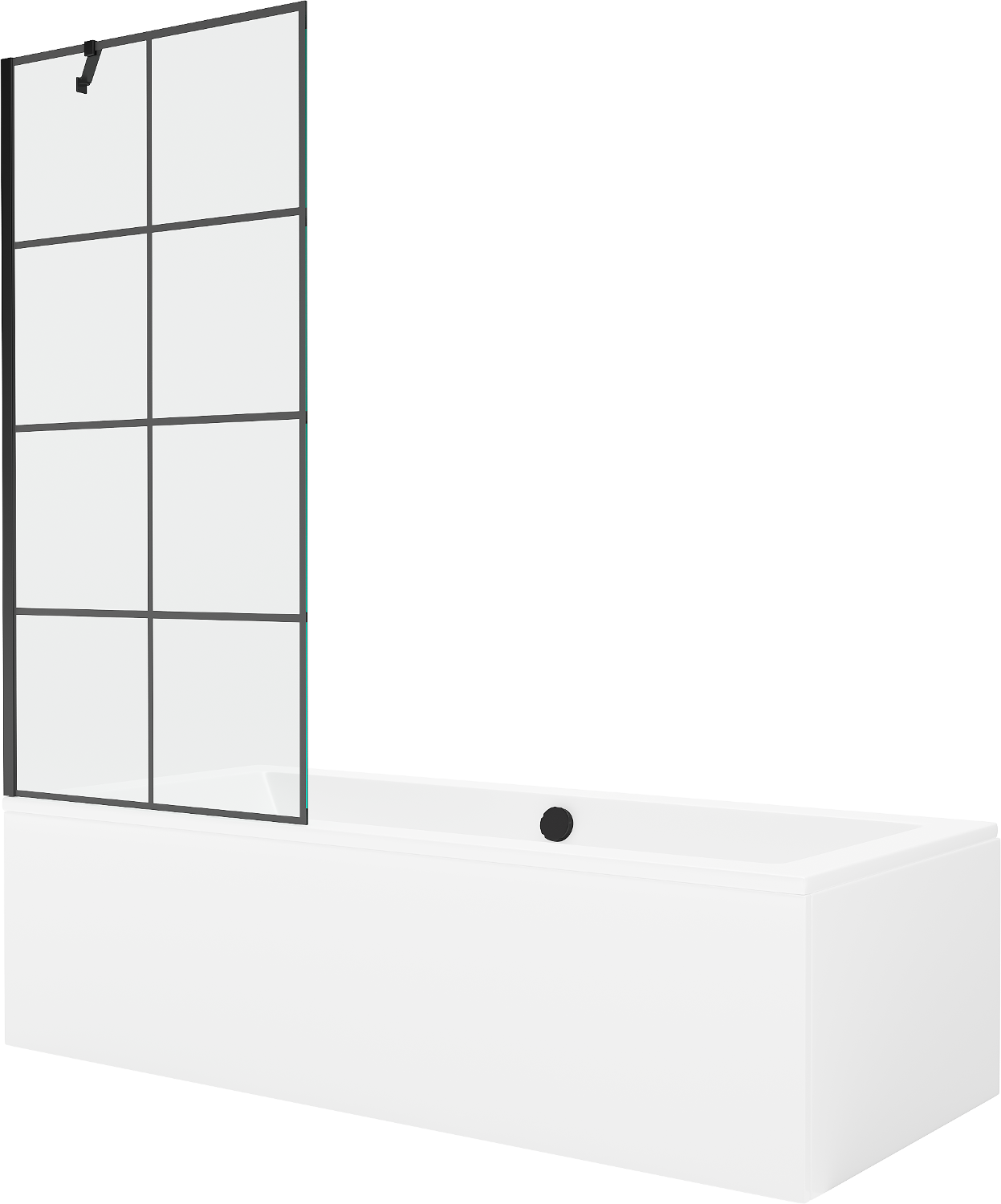 Mexen Cube baignoire rectangulaire 170 x 80 cm avec habillage et paravent 1 volet 80 cm, motif noir - 550517080X9508007077