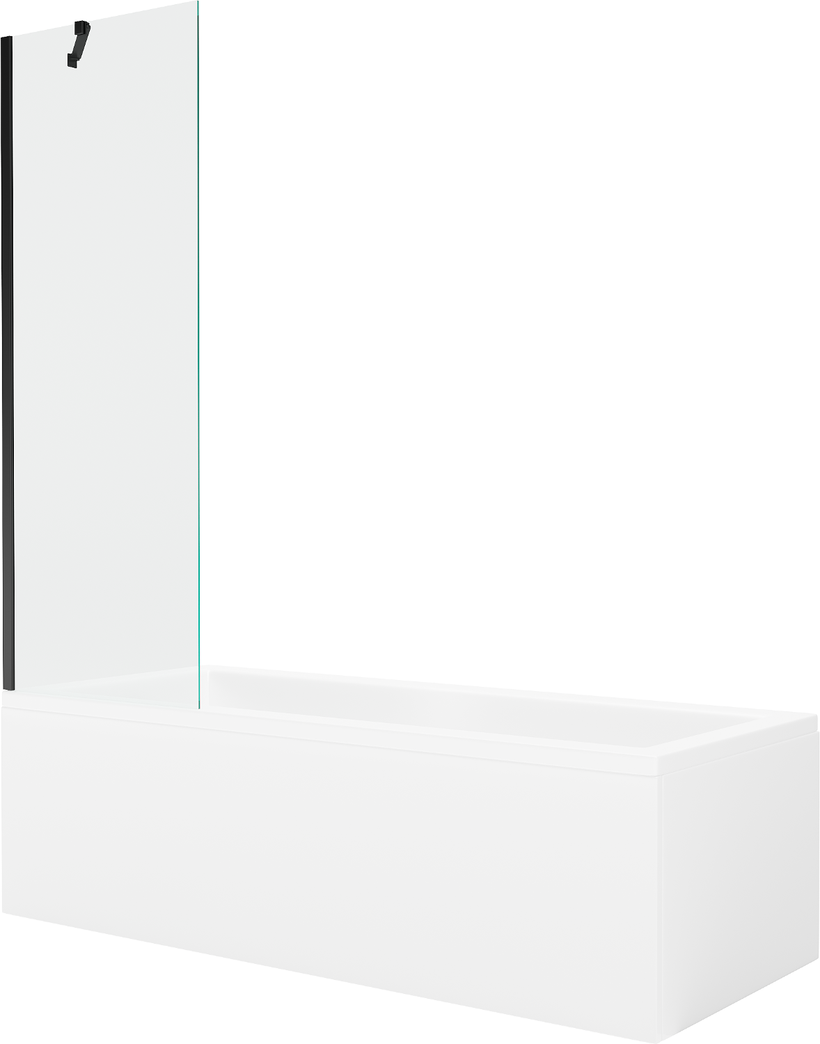 Mexen Cubik baignoire rectangulaire 160 x 70 cm avec tablier et écran pare-baignoire à 1 volet 60 cm, transparent, noir