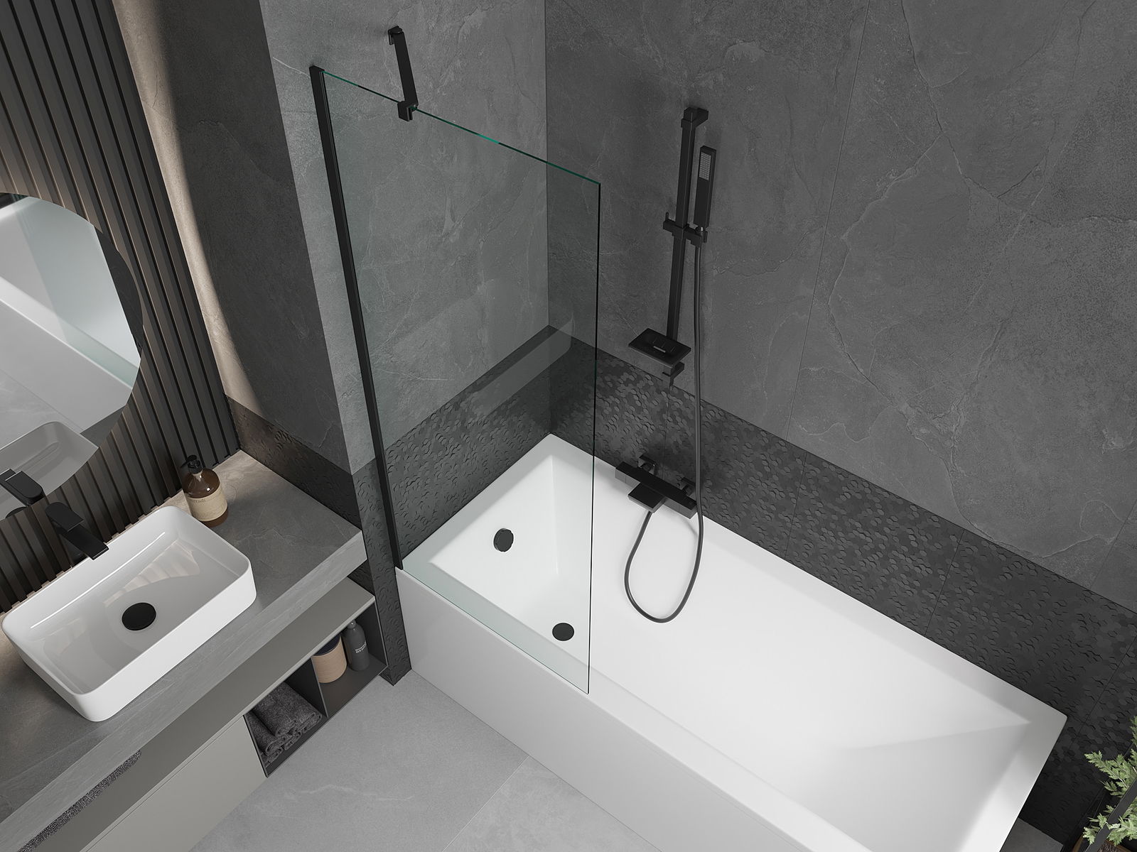 Mexen Cubik baignoire rectangulaire 160 x 70 cm avec revêtement et pare-douche 1 volet 70 cm, transparent, noir