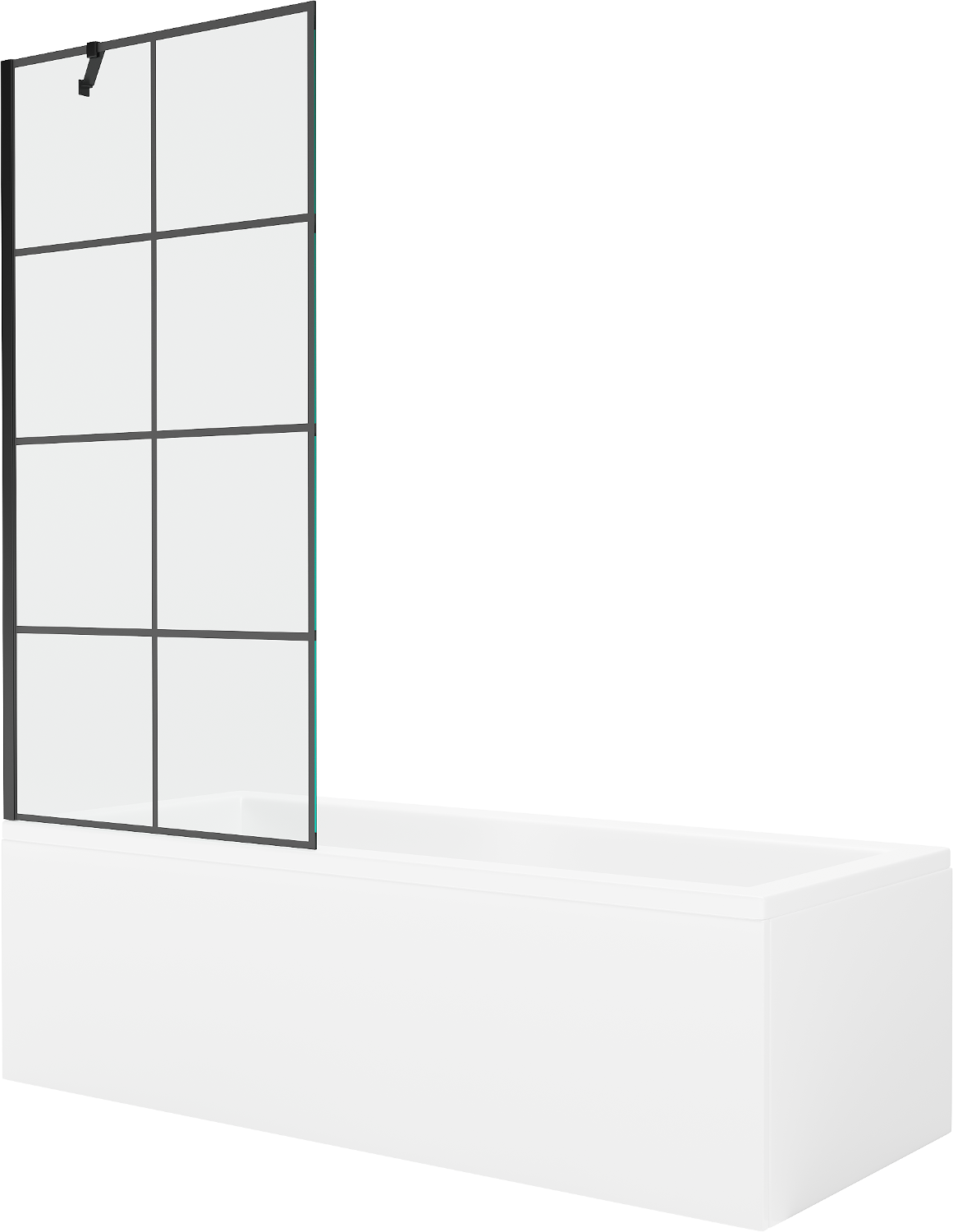 Mexen Cubik baignoire rectangulaire 160 x 70 cm avec tablier et paroi de douche à 1 vantail 80 cm, motif noir