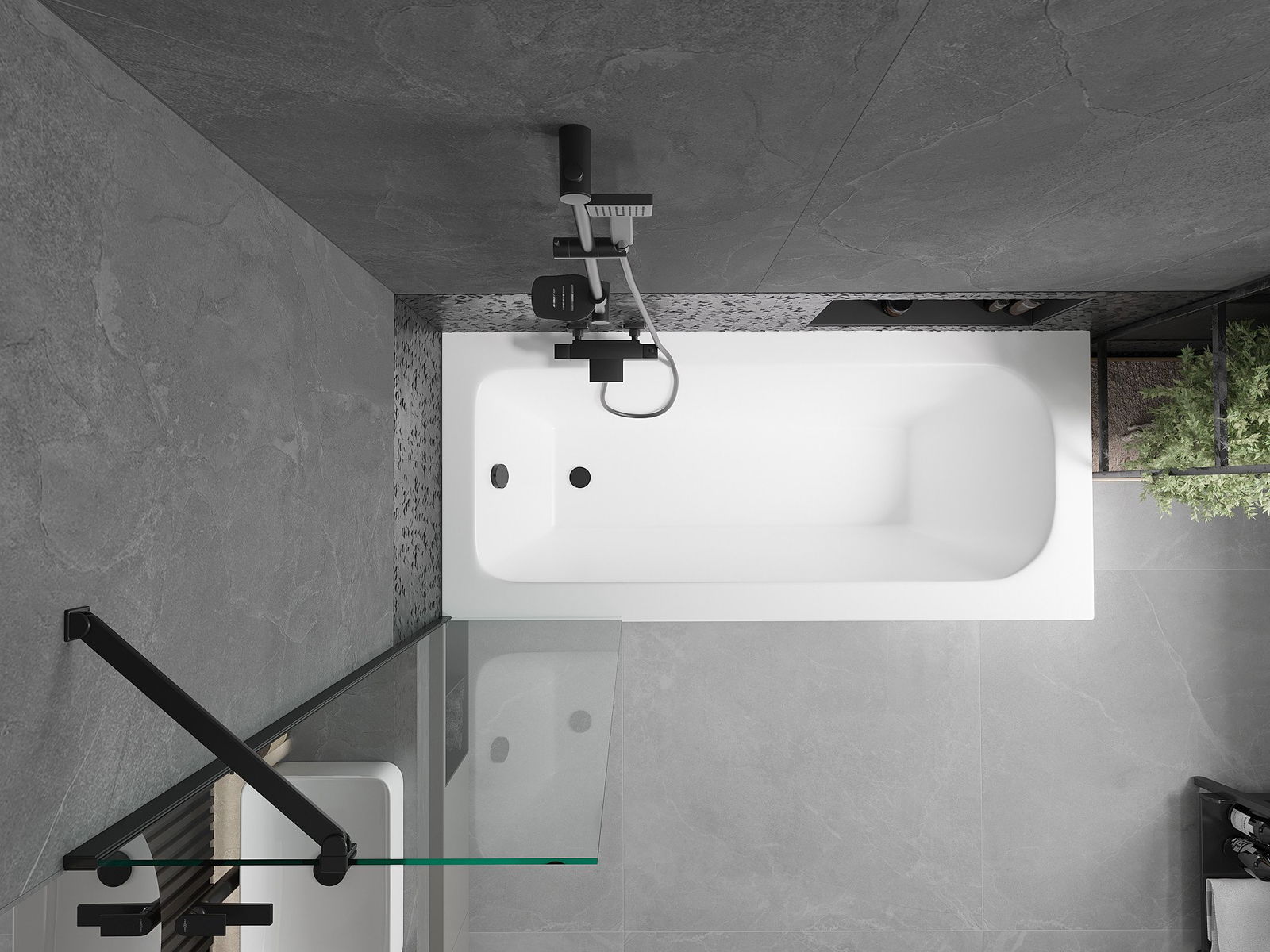 Mexen Vega baignoire rectangulaire 150 x 70 cm avec habillage et paravent 1 volet 50 cm, transparent, noir