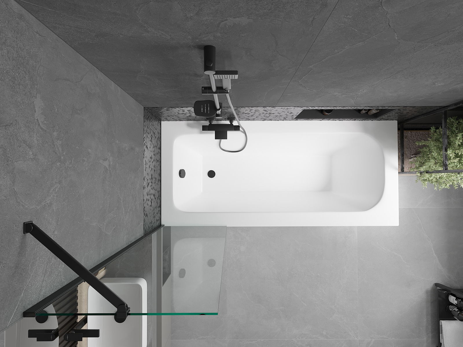 Mexen Vega baignoire rectangulaire 180 x 80 cm avec panneau et paravent à 1 volet de 50 cm, transparent, noir