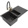 Mexen Matias évier en granit 1,5 bac avec égouttoir et robinet de cuisine Duo, noir/argent - 6502-73-671701-57-B