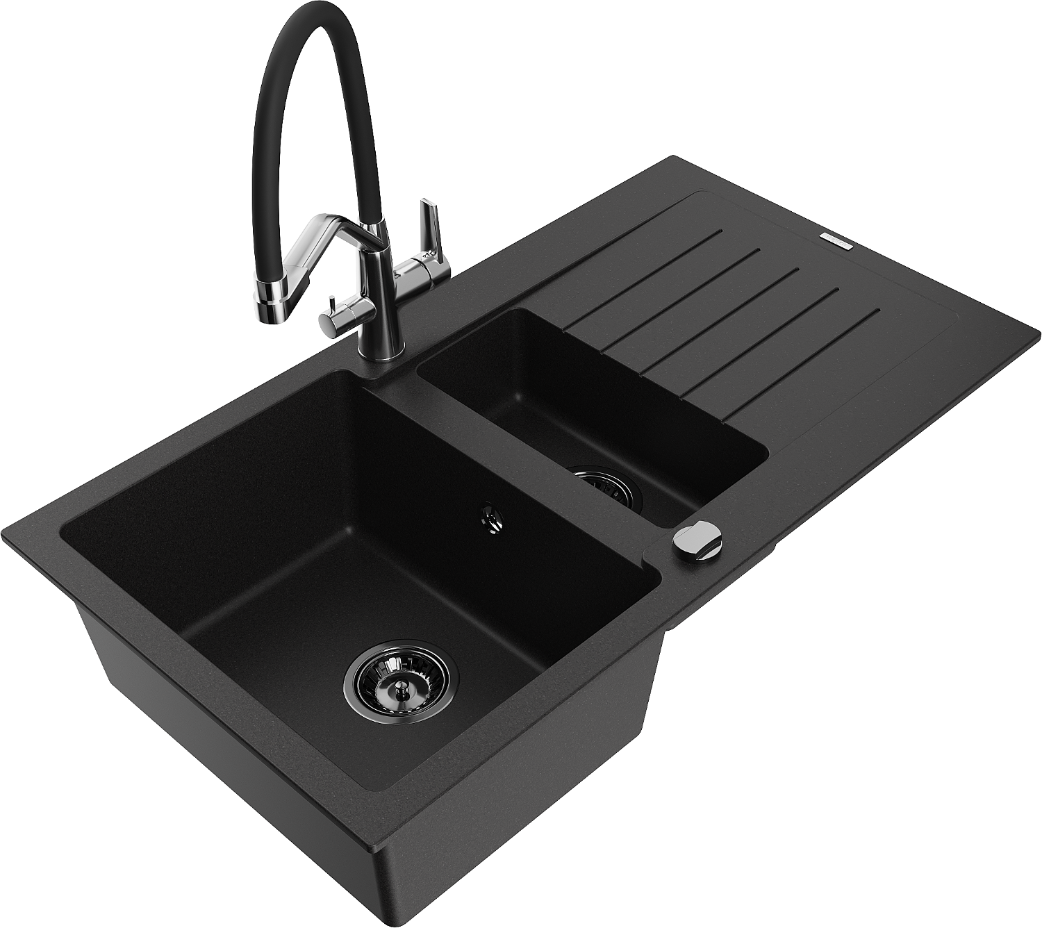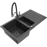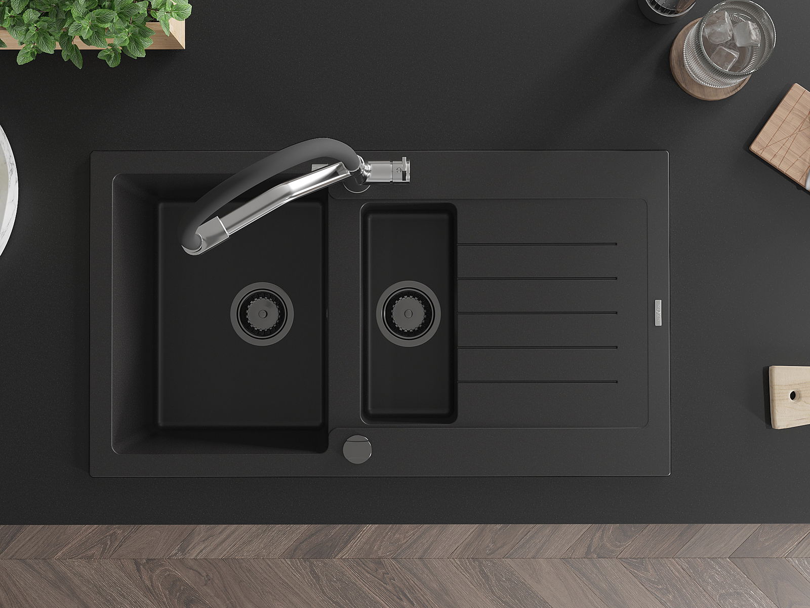 Mexen Matias évier en granit 1,5 bac avec égouttoir et robinet de cuisine Duo, noir - 6502-77-671701-07-B