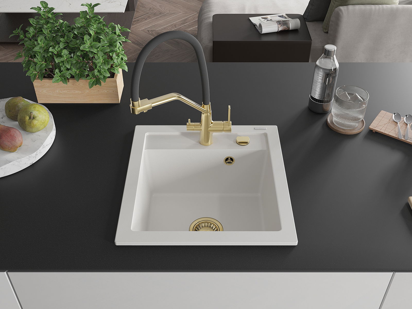 Mexen Vito évier en granit 1-bac avec robinet de cuisine Duo, blanc - 6503-20-671701-57-G
