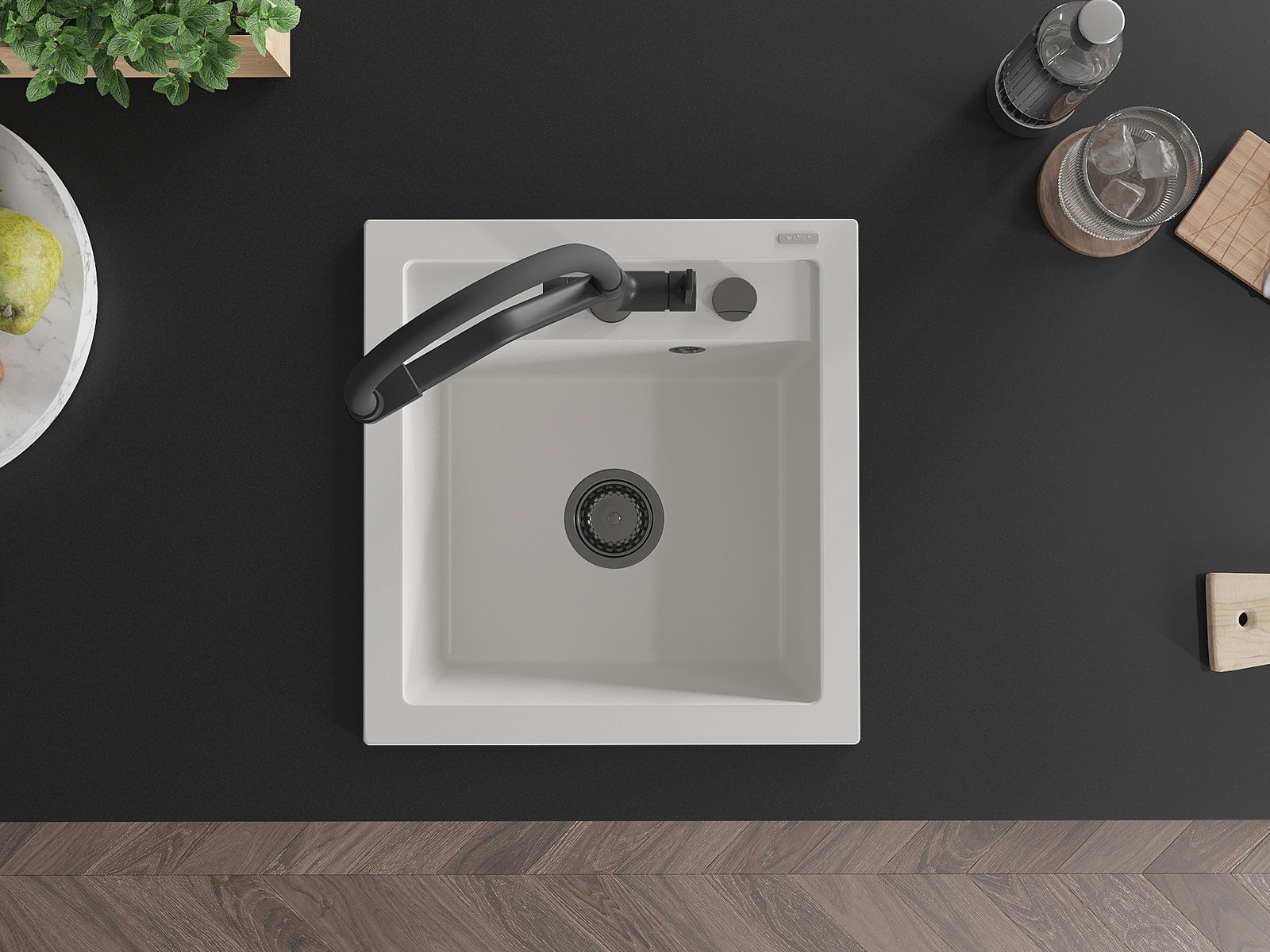 L'évier a un trou sous-meulé de 35 mm de diamètre à percer soi-même. Il peut être utilisé, entre autres, pour installer un distributeur de liquide, ce qui éliminera la présence de bouteilles en plastique dans la cuisine et lui donnera une finition élégante.