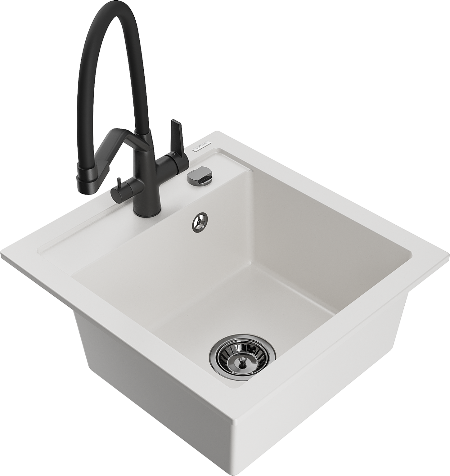 Mexen Vito évier en granit à 1 bac avec robinet de cuisine Duo, blanc - 6503-20-671701-70-B