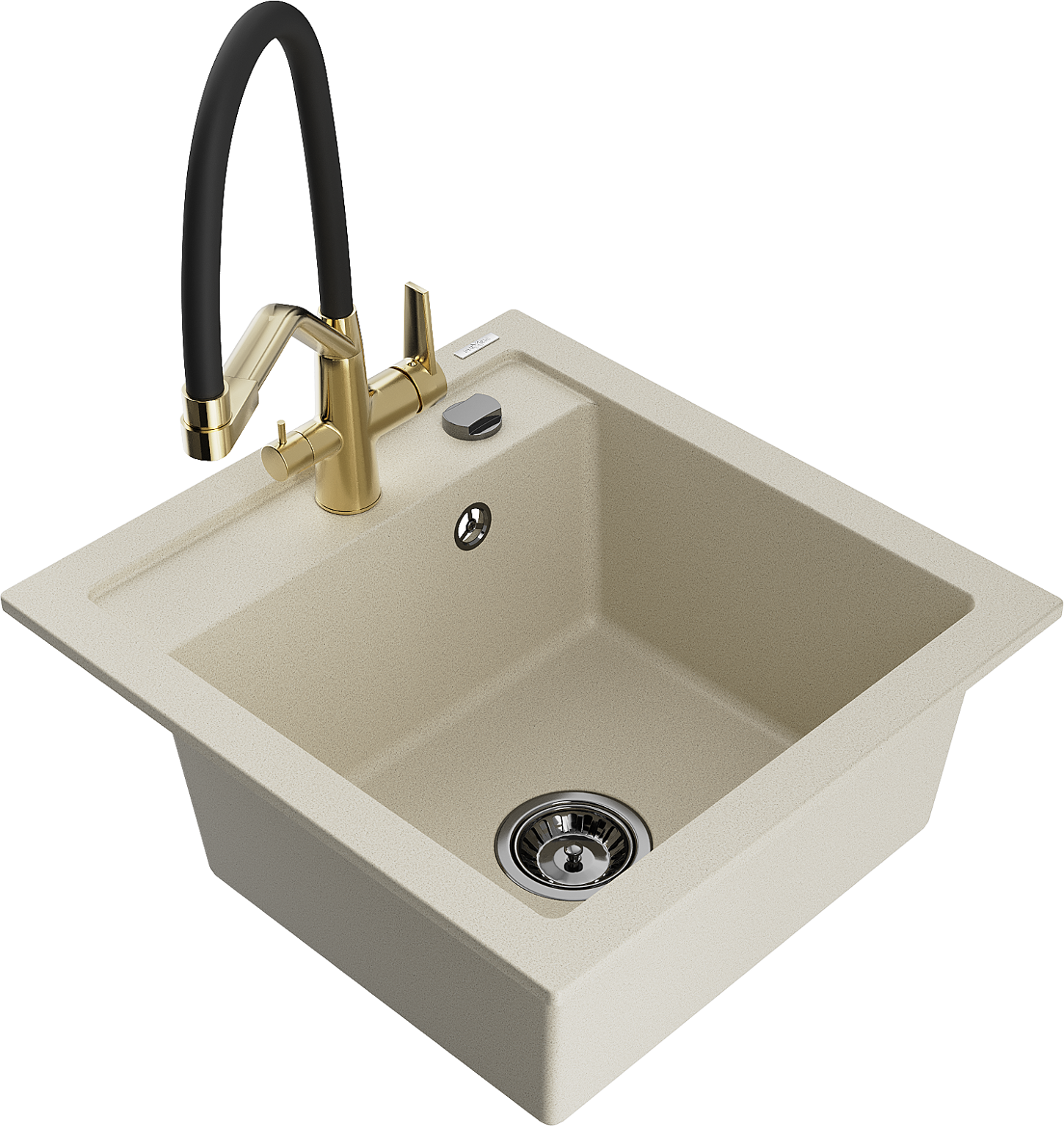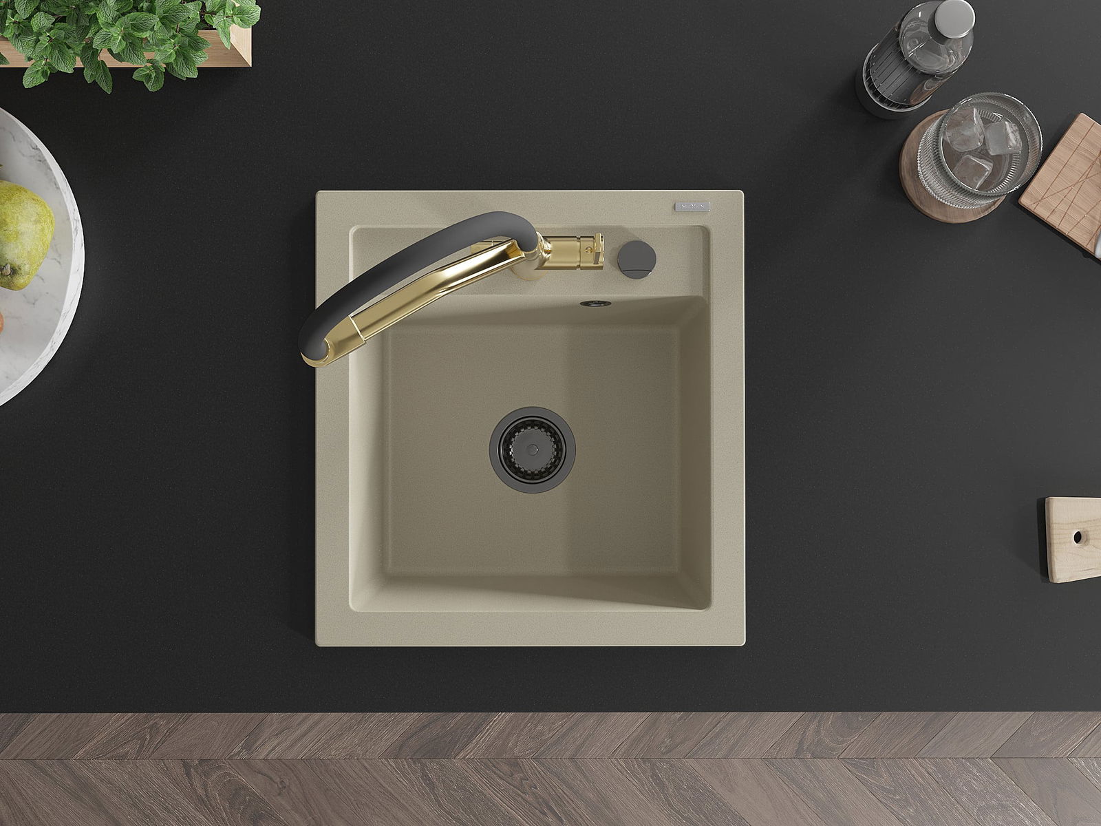 Mexen Vito évier en granit 1 bac avec robinet de cuisine Duo, beige - 6503-69-671701-57-B