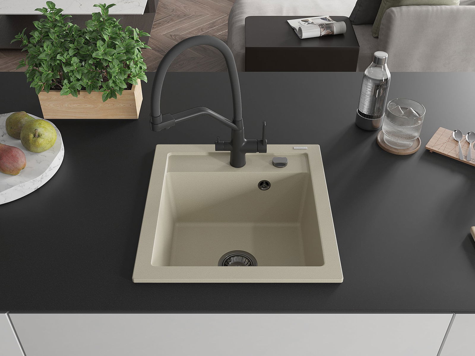 L'évier a été fabriqué en granit de haute qualité. Il constitue un complément élégant et surtout pratique à toute cuisine, quel que soit son style. La haute qualité et la durabilité du granit garantissent une utilisation pendant de nombreuses années.